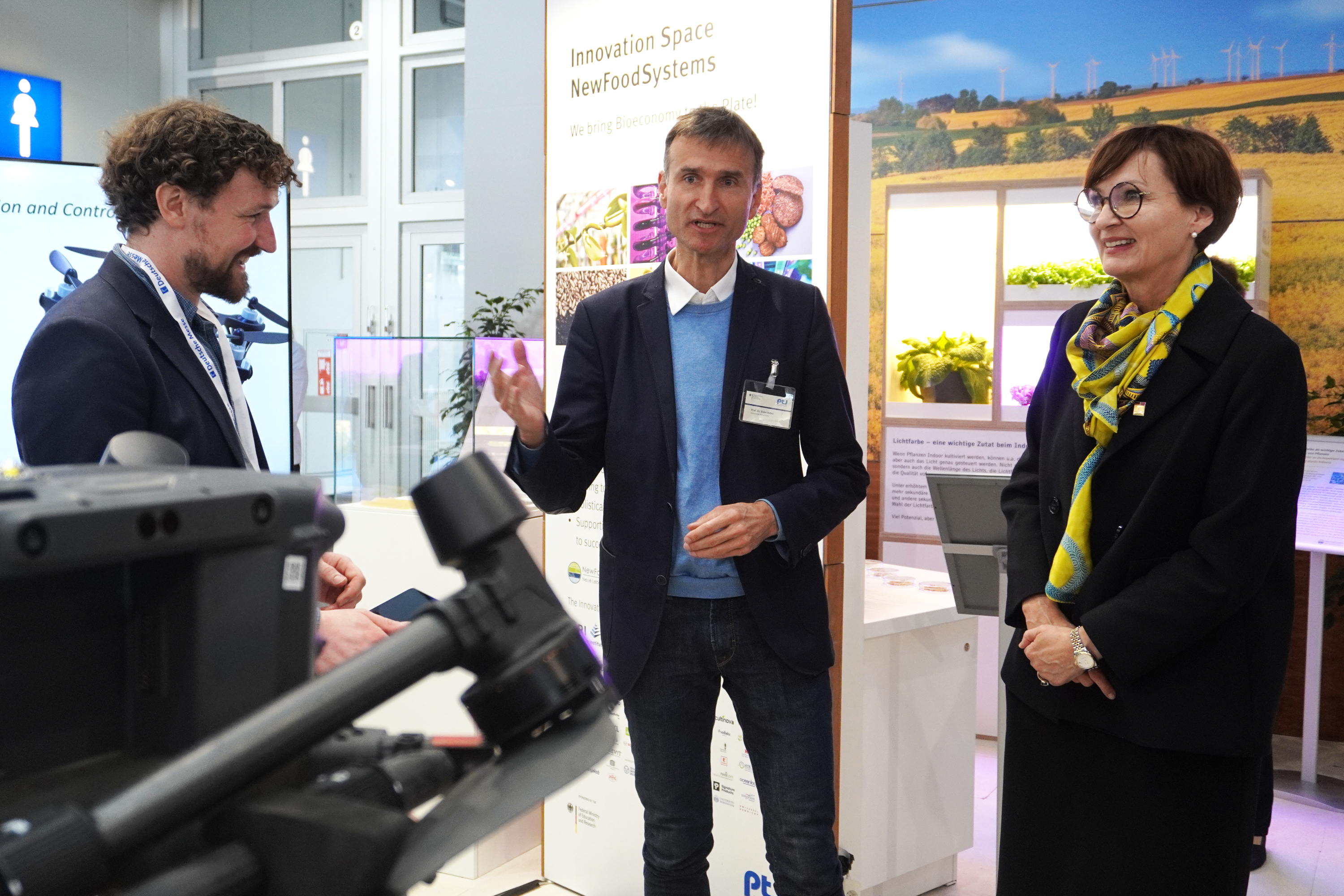 Die BMBF-Förderlinie »Agrarsysteme der Zukunft« ist ab heute bis einschließlich Freitag, den 26.04.25 beim "Schaufenster Bioökonomie“ auf der Hannover Messe vertreten. Zum Auftakt kam Bundesforschungsministerin Bettina Stark-Watzinger und ließ sich die aktuellen Forschungsergebnisse der Konsortien DAKIS und NOcsPS präsentieren.