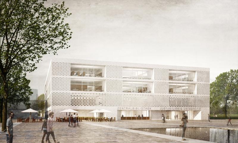 Der viergeschossige Neubau der Zentralbibliothek und des Universitätsarchivs, der nun im Rohbau fertiggestellt ist und in Zukunft direkt mit der bestehenden Universitätsbibliothek verbunden sein wird, ist das größte Gebäude des von der JLU mit dem Land Hessen abgestimmten Masterplans zur Neugestaltung des Philosophikums. Es handelt sich zugleich um das erste Gebäude, das unmittelbar am neuen Campusplatz liegt.