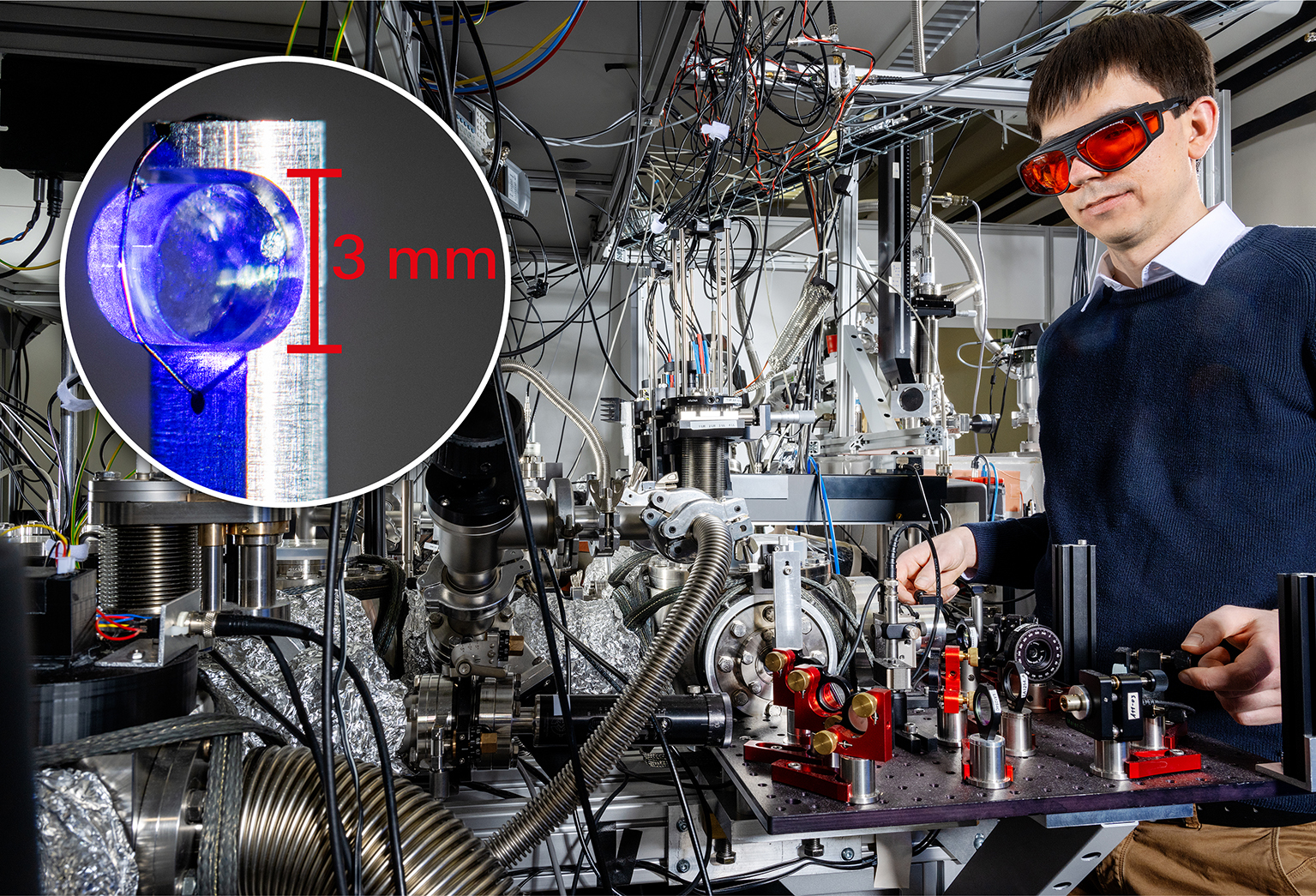 To solve this problem, PTB and TU Wien launched a cooperation project in 2020, funded by the European Research Council. At PTB, a laser system with the required ultraviolet wavelength of about 148 nm was developed, while TU Wien produced crystals into which the thorium nuclei were specifically incorporated in large numbers. Both tasks were not only groundbreaking but also technically very complex. In the end, however, they made it possible to hit about ten quadrillion (1016) thorium nuclei simultaneously with the laser, i. e., the nuclear response to laser excitation can be amplified, the necessary measuring time can be reduced, and the probability of finding the desired energy transition can be increased.