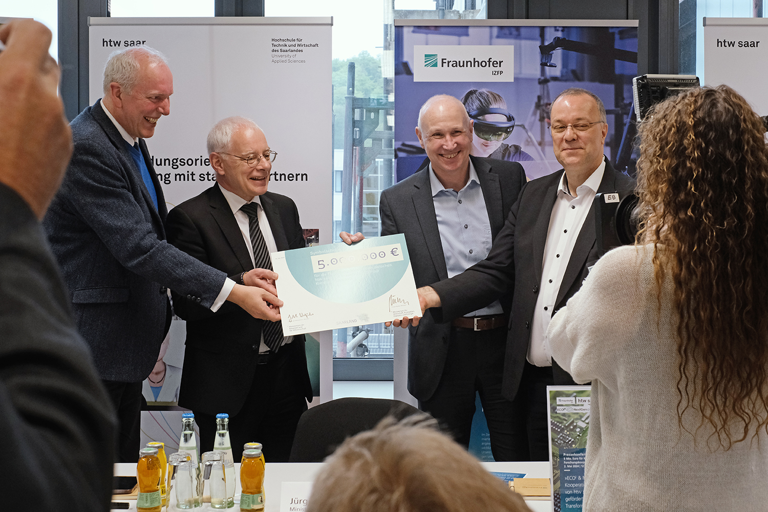 The transformation fund will be used to finance the establishment of two cooperative research groups in close cooperation between Saarland University of Applied Sciences (htw saar) and the Fraunhofer Institute for Nondestructive Testing IZFP. The focus is on researching new methods to conserve resources in industrial production through closed-loop processes. After the start-up phase, the new research fields will be permanently based at the Fraunhofer IZFP in Saarbrücken.