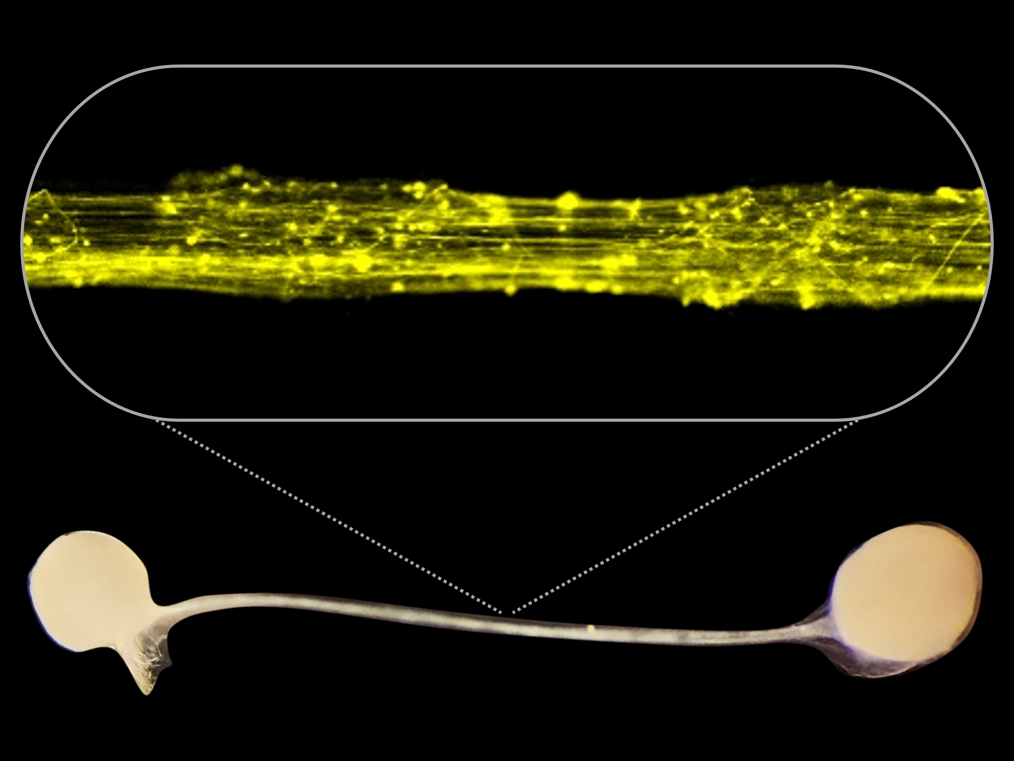 Unser Gehirn ähnelt dem Straßennetz: Wie Landstraßen vernetzen kleine Verbindungen benachbarte Nervenzellen, während dicke Nervenbündel wie Autobahnen die verschiedenen Regionen des Gehirns verbinden. Diese dicken, stark genutzten Nervenbündel, die zum Beispiel die linke und rechte Gehirnhälfte und die Vorder- und Rückseite des Gehirns verbinden, konnten bisher nicht experimentell untersucht werden. Dem ForscherInnenteam rund um Jürgen Knoblich am Institut für Molekulare Biotechnologie (IMBA) der Österreichischen Akademie der Wissenschaften gelang es nun in einer Zusammenarbeit mit Gregor Kasprian und KollegInnen der Medizinischen Universität Wien, ein Organoidmodell dieser Nervenbündel zu entwickeln.