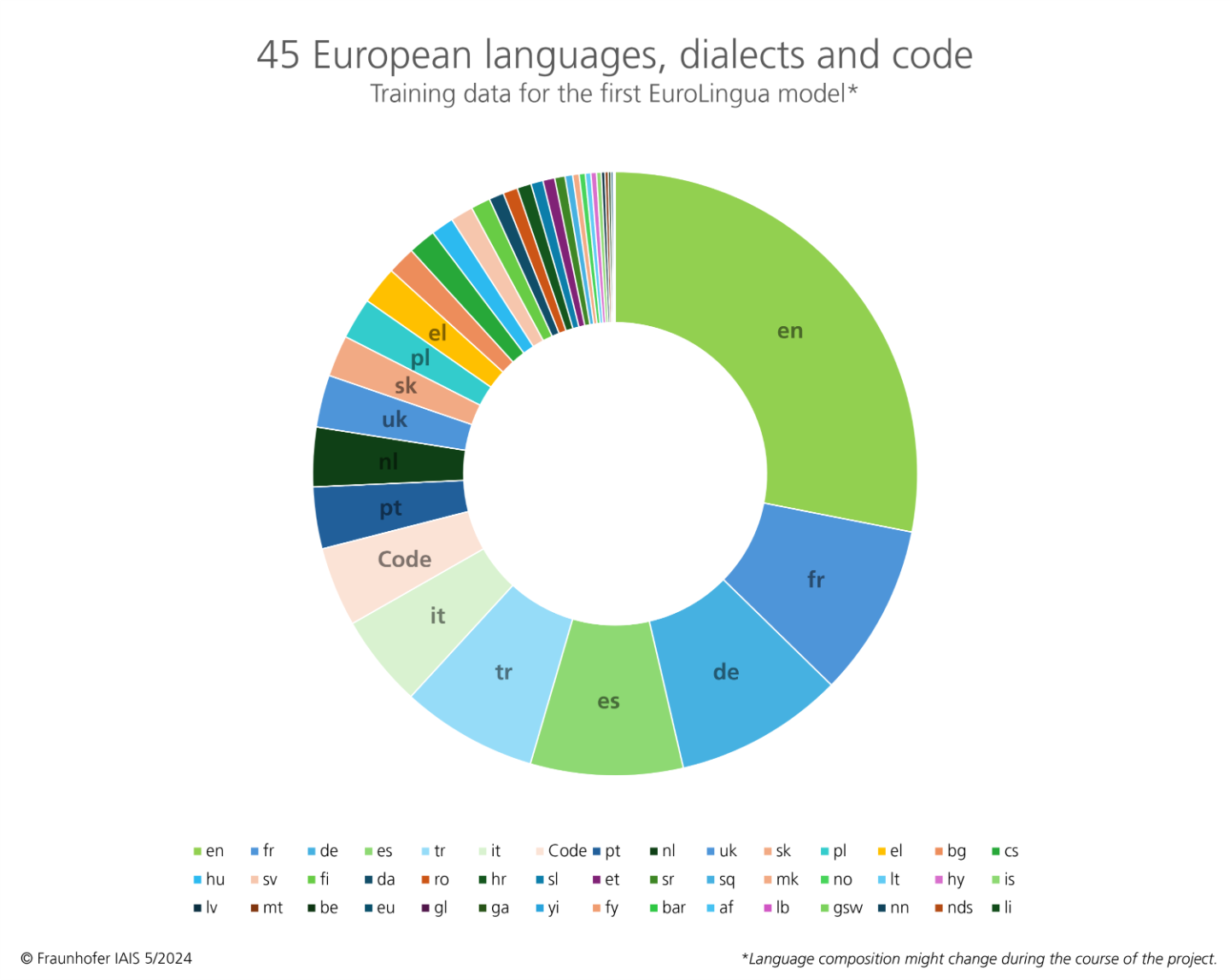 The new EuroLingua models are based on a training dataset consisting of 45 European languages, dialects and codes, including the 24 official European languages. This gives a significant weight to European languages and values – multilingual large language models are still rare. Training will start at the end of May 2024 and the first joint models are expected to be published in the coming months.