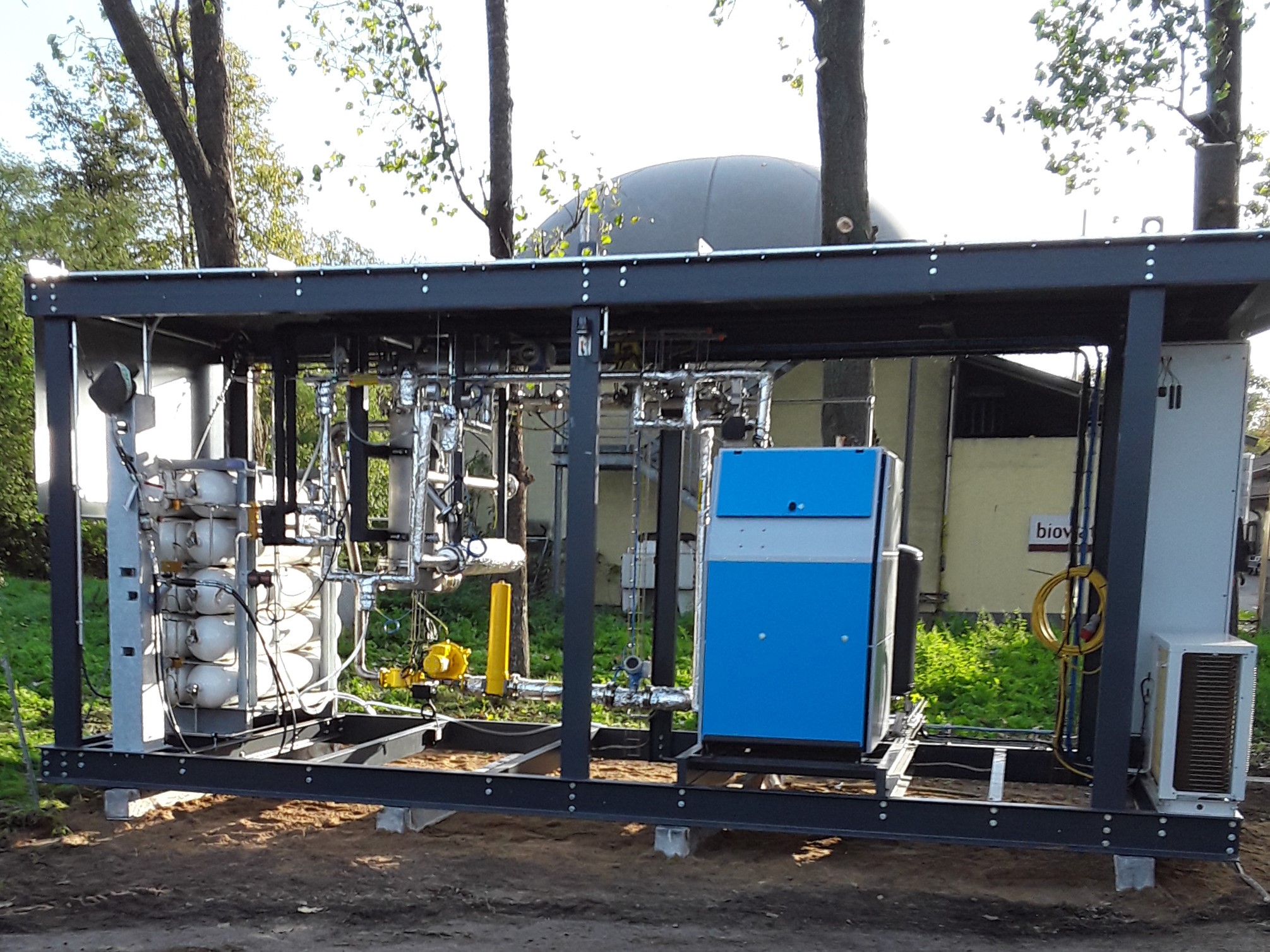 The bio-CNG pilot plant is the result of intensive research collaboration as part of the RES4LIVE project, which aims to make animal husbandry at various European locations energy self-sufficient and fossil-free. The plant was built on the site of the agricultural project partner Lehr- und Versuchsanstalt für Tierzucht und Tierhaltung e.V. in Groß Kreutz and processes the farm's own biogas into biomethane/bio-CNG, thus enabling a complete replacement of fossil fuels for mobile drives in agriculture.