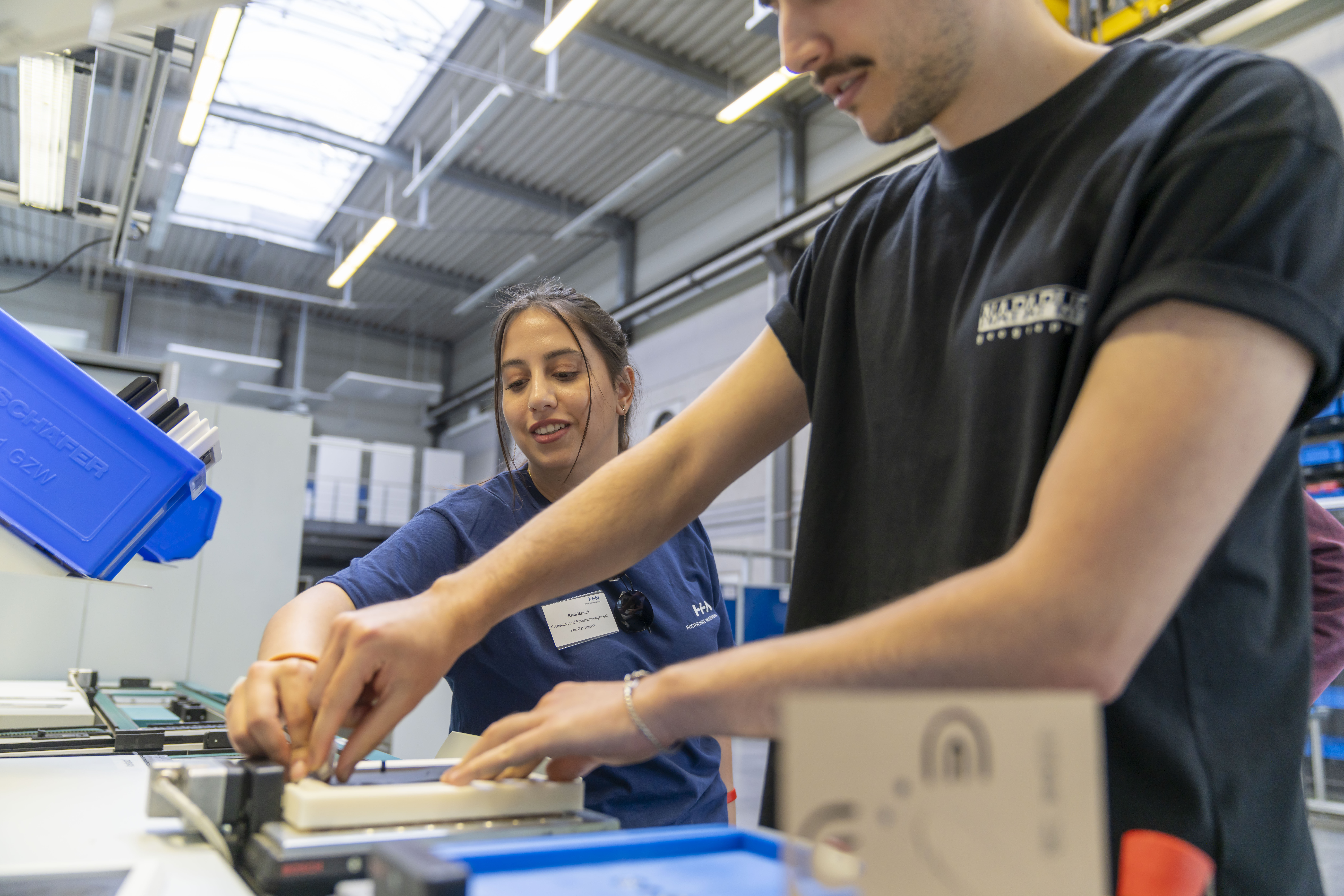 Engagiert war auch das Team um Studentin Betül Mamuk aus dem Studiengang Produktion und Prozessmanagement. Die Studierenden erstellten Besucher*innen ihr persönliches „Laser-Foto“. „Auf Wunsch wurden unsere Gäste fotografiert, anschließend zeichnete ein Laser das Foto nach“, erklärt Betül Mamuk. „Wir programmierten dafür auch den Fahrplan für das Produktionsband. So wusste das Bild, an welcher Station es verweilen muss, damit es am Ende als fertiges Produkt in den Händen der Besucher*innen landete.“