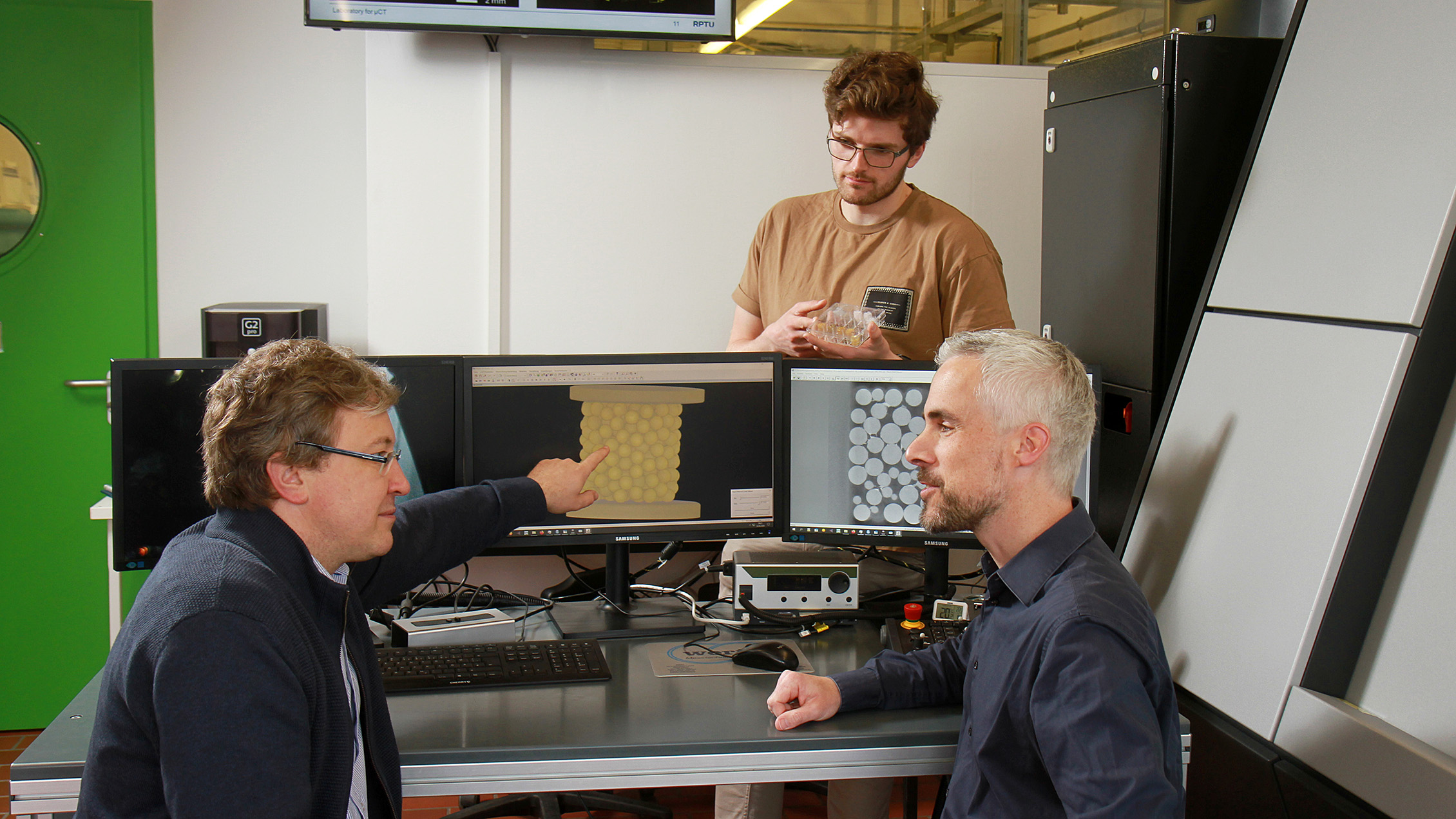 Wie müssen Tabletten, Pellets und Briketts zusammengesetzt sein, damit sie nach der Produktion beim Transport nicht zerbrechen? Wie muss ein Industriefilter im Inneren gestaltet sein, um Feststoffe besser herauszufiltern? Wie lange halten chemische Katalysatoren hohe mechanische Belastungen im Hochdruckreaktor aus? Diesen Fragen gehen Kaiserslauterer Forscher nach. Zum Einsatz kommt ein Computertomograph, der kleinste Materialstrukturen zerstörungsfrei erfasst. Die Technologie ist für verschiedene Anwendungsbereiche interessant. Auf der Prozessindustrie-Messe Achema in Frankfurt stellt das Team sie vom 10. bis 14. Juni am Forschungsstand Rheinland-Pfalz (Stand E51, Halle 6.0) vor.