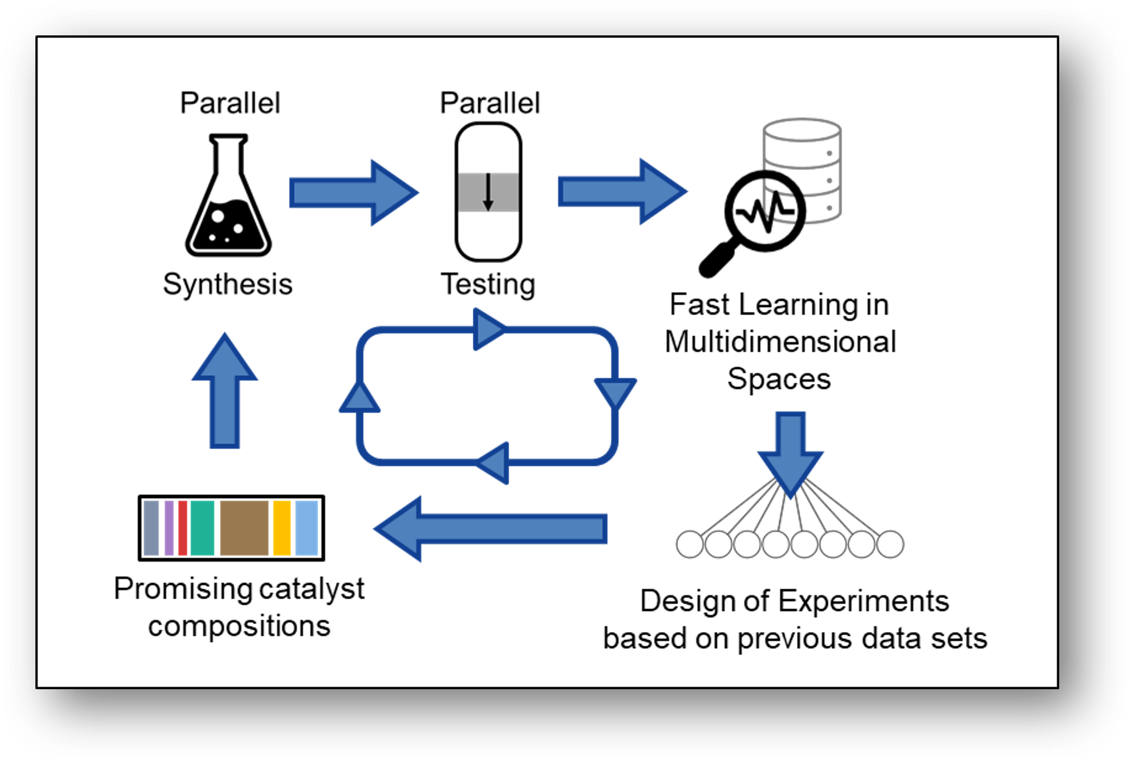 Die Bekämpfung des Klimawandels erfordert ein Umdenken bei etablierten chemischen Prozessen in einer Zeitskala von Jahren nicht etwa Jahrzehnten, wie es bei traditionellen F&E-Zyklen der Fall ist. In Zusammenarbeit mit BasCat hat ein Team von Forscher*innen aus der Theorieabteilung am Fritz-Haber-Institut einen beschleunigten Entdeckungsansatz entwickelt, um eine vielversprechende katalytische Promotorformulierung für die Umwandlung von Propan in die Basischemikalie Propylen zu identifizieren. Entwickelt in wenigen Wochen und mit weniger als 100 durchgeführten Experimenten, steht der neu geförderte Katalysator jenen gegenüber, die durch jahrzehntelange Forschung entwickelt wurden.