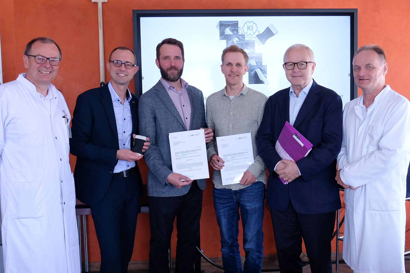 Am Freitag, 31. Mai 2024, fand im Universitätsklinikum Schleswig-Holstein (UKSH), Campus Kiel, die Übergabe des Förderbescheides für das Projekt „Interaktiver KI-gestützter Freihand-3D-Ultraschall in der Knochenchirurgie“ statt. Digitalisierungsminister Dirk Schrödter überreichte den Förderbescheid in Höhe von 295.000 Euro. Das Projekt ist eine Kooperation zwischen dem UKSH und dem Startup Echoscout. Ziel ist es, den 3D-Ultraschall zu einem „CT für die Hosentasche“ weiterzuentwickeln – eine kostengünstige, strahlenfreie und zugleich präzise Bildgebungstechnik. Durch den Einsatz von künstlicher Intelligenz (KI) sollen die Ultraschallbilder sicherer und einfacher ausgewertet werden können.
