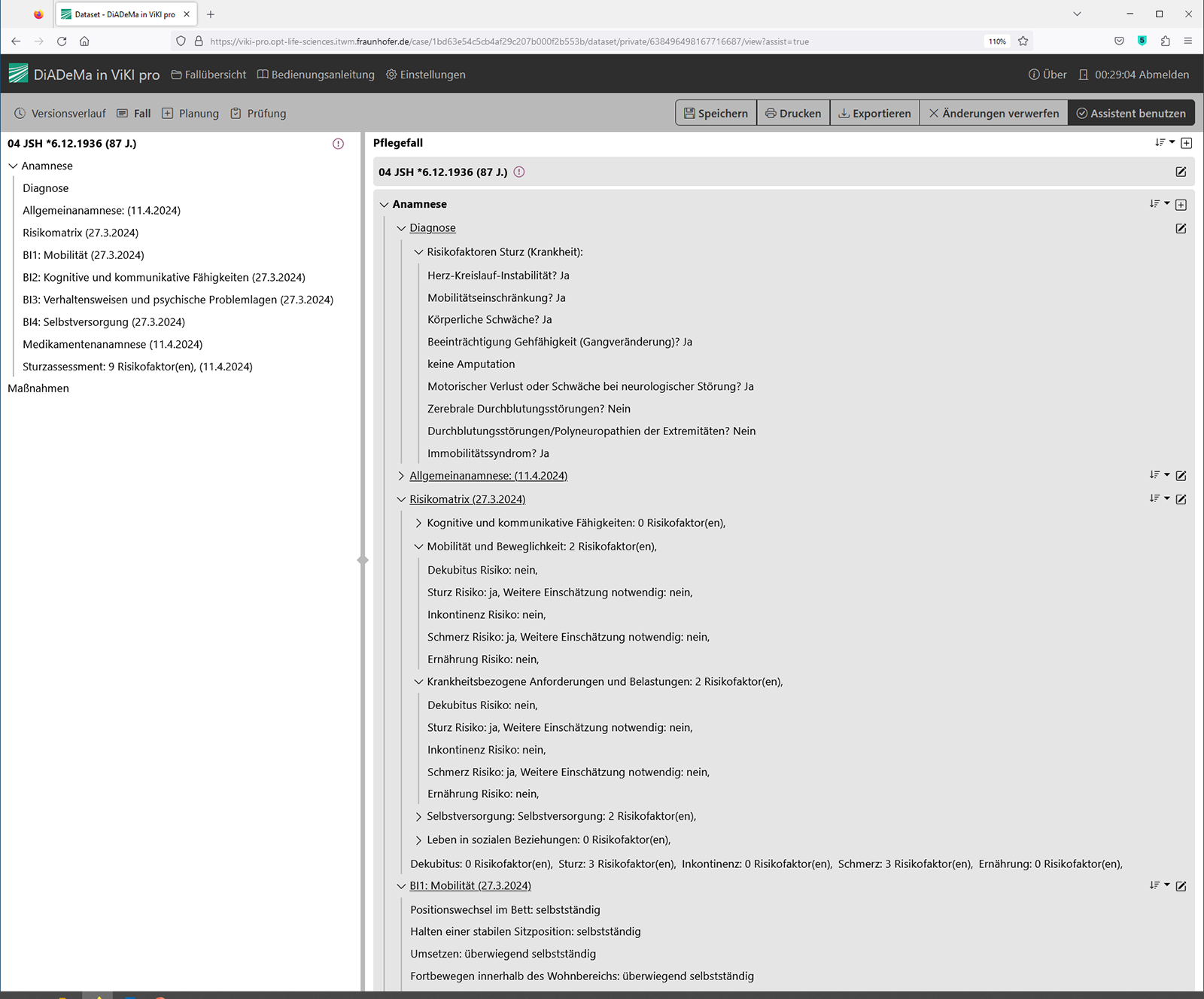 Webanwendung für die digital assistierte Pflegeplanung