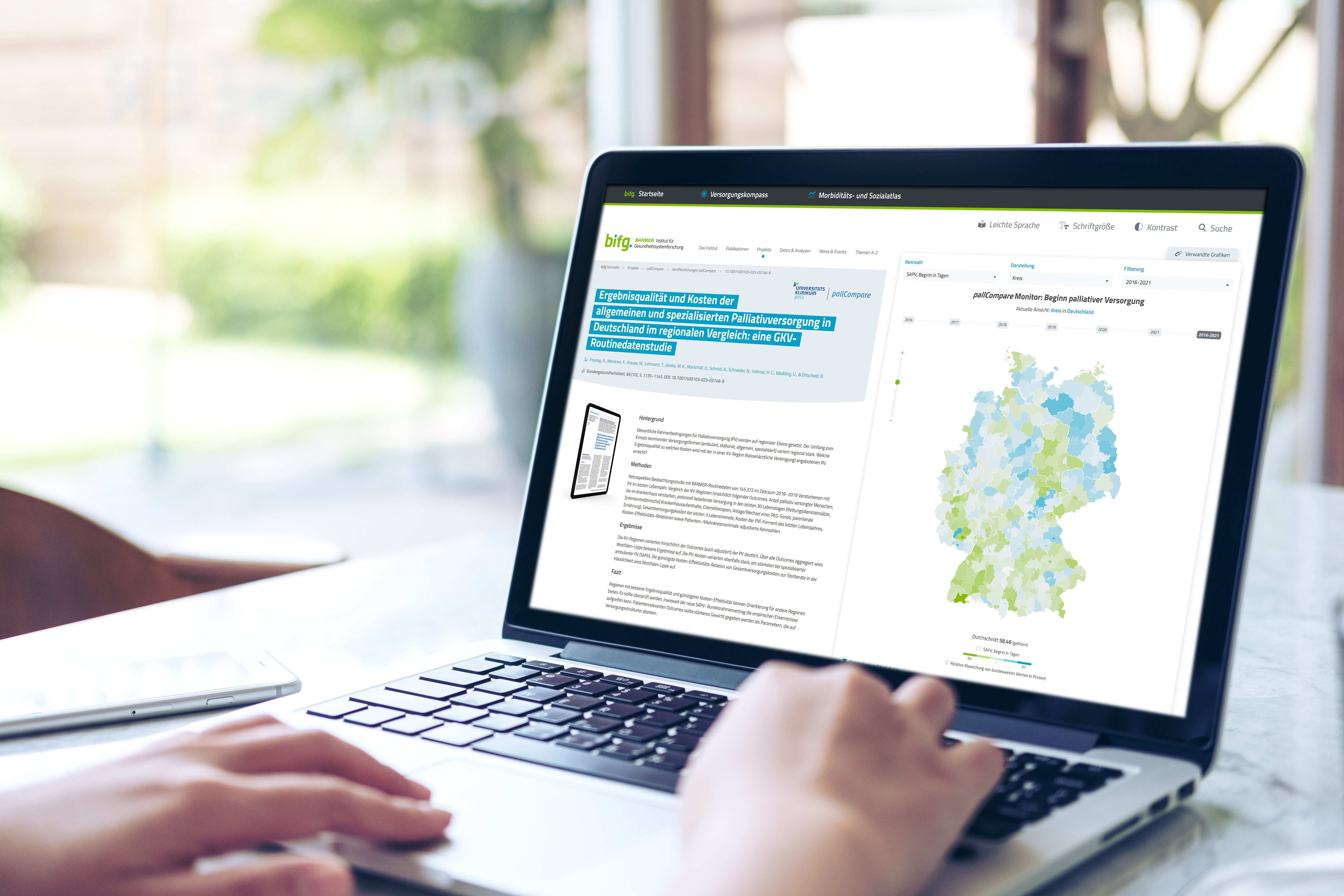 Um die Versorgung zu evaluieren, wertete das Universitätsklinikum Jena gemeinsam mit dem BARMER Institut für Gesundheitssystemforschung auf Basis der BARMER-Routinedaten die Inanspruchnahme, Qualität und Kosten der verschiedenen Versorgungsformen aus. Der Innovationsausschuss beim Gemeinsamen Bundesausschuss fördert das Versorgungsforschungsprojekt. Im interaktiven Portal des BARMER Institutes sind die aufbereiteten Daten jetzt als pallCompare Monitor öffentlich verfügbar. Die Ergebnisse der wissenschaftlichen Auswertung können Hinweise zur Verbesserung der Palliativversorgung geben.