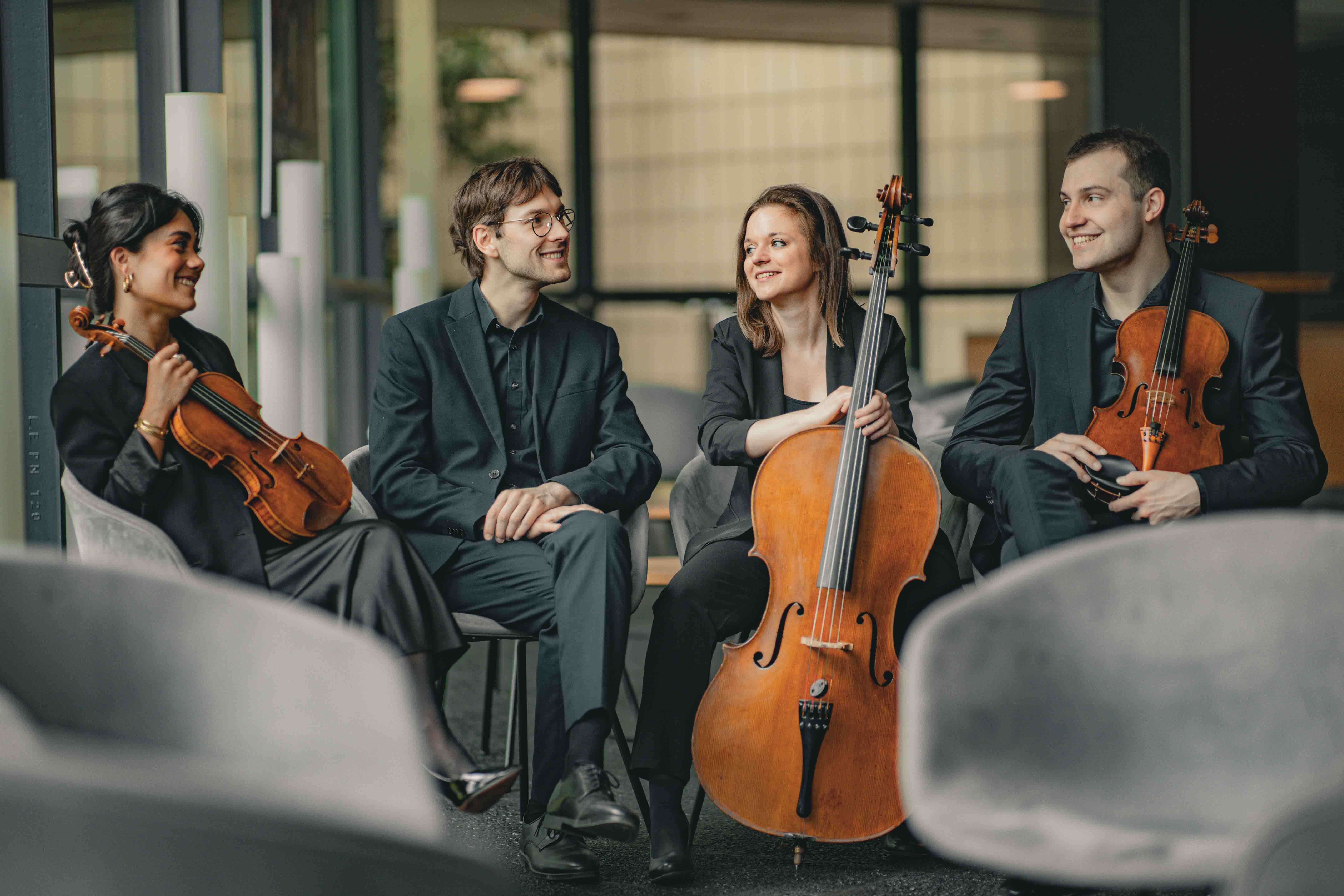 Die Mitglieder des Quartetts: Roberta Verna, Violine; Philipp Sussmann, Viola; Irena Josifoska, Cello und Viktor Soos, Klavier, die sich während ihres Studiums in Berlin und Hannover begegnet sind, wollten nach mehreren Konzerten bei einem Kammermusikfestival das vielseitige Repertoire des Klavierquartetts gemeinsam ergründen. Die Musikerinnen und Musiker wurden individuell mit zahlreichen Preisen bei internationalen Wettbewerben ausgezeichnet und haben bei prominenten Pädagogen wie Herwig Zack, Jens Peter Maintz, Walter Küssner und Bernd Götzke studiert. Sie sind Stipendiaten beim Deutschen Musikwettbewerb 2024.