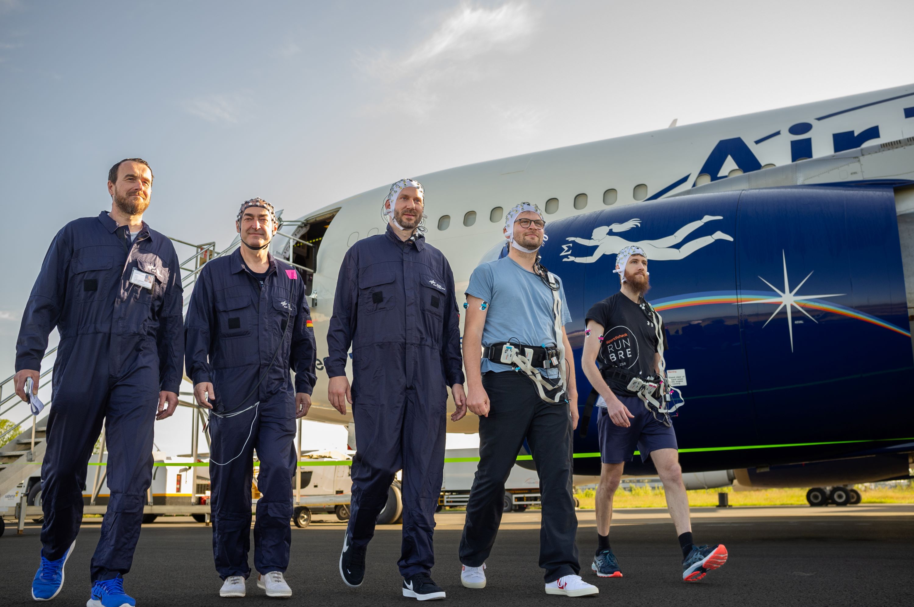 Die Effekte der simulierten Schwerelosigkeit auf den menschlichen Körper im Vergleich zur echten Schwerelosigkeit untersuchen die Forschenden derzeit im Projekt GraviMoKo, das ebenfalls vom BMWK im Rahmen der Initiative Space2Health gefördert wird. Mit der Teilnahme an der 42. DLR-Parabelflugkampagne vom 27. Mai bis 6. Juni 2024 im französischen Bordeaux haben sie einen wichtigen Meilenstein in dem Vorhaben erreicht.