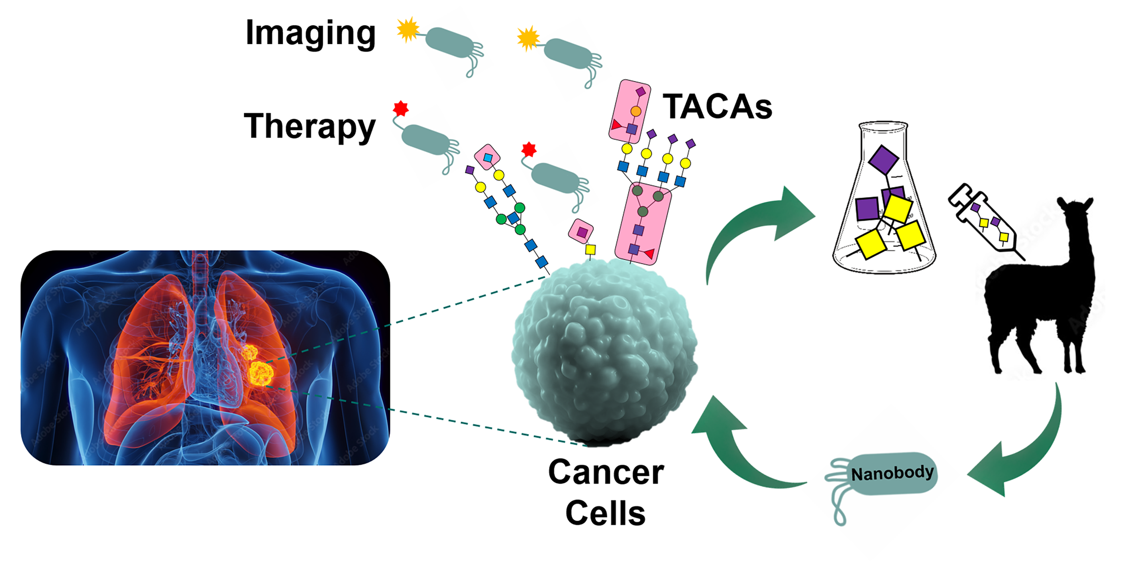 Der Weg von den Alpakas zum Menschen ist natürlich langwierig und erfordert zahlreiche Versuche sowie eingehende Forschung. Aber Moscovitz ist zuversichtlich, dass der Fokus auf die einzigartigen Zuckersignaturen von Krebs mit Nanokörpern vielversprechend ist. Aufgrund ihrer Größe können Nanokörper Ziele erreichen, die für herkömmliche Antikörper unzugänglich sind, wie etwa dichtes Krebsgewebe. In Kombination mit spezifischen Proteinen oder Medikamenten könnten Nanokörper Therapien ermöglichen, die auf das Glykanprofil eines Patienten zugeschnitten sind. Angetrieben von dieser Vision gründete Moscovitz 2019 gemeinsam mit Prof. Peter Seeberger die Tacalyx GmbH, um vielversprechende Anti-TACA-Antikörper weiterzuentwickeln und zu vermarkten. Eine weitere geplante Ausgründung, AGAS Theranostics (derzeit im Rahmen des Max-Planck-Start-up-Inkubators Maximize), wird Anti-Zucker-Antikörper im Patientenblut erforschen, um Krebs und andere Krankheiten schnell und zuverlässig zu erkennen.