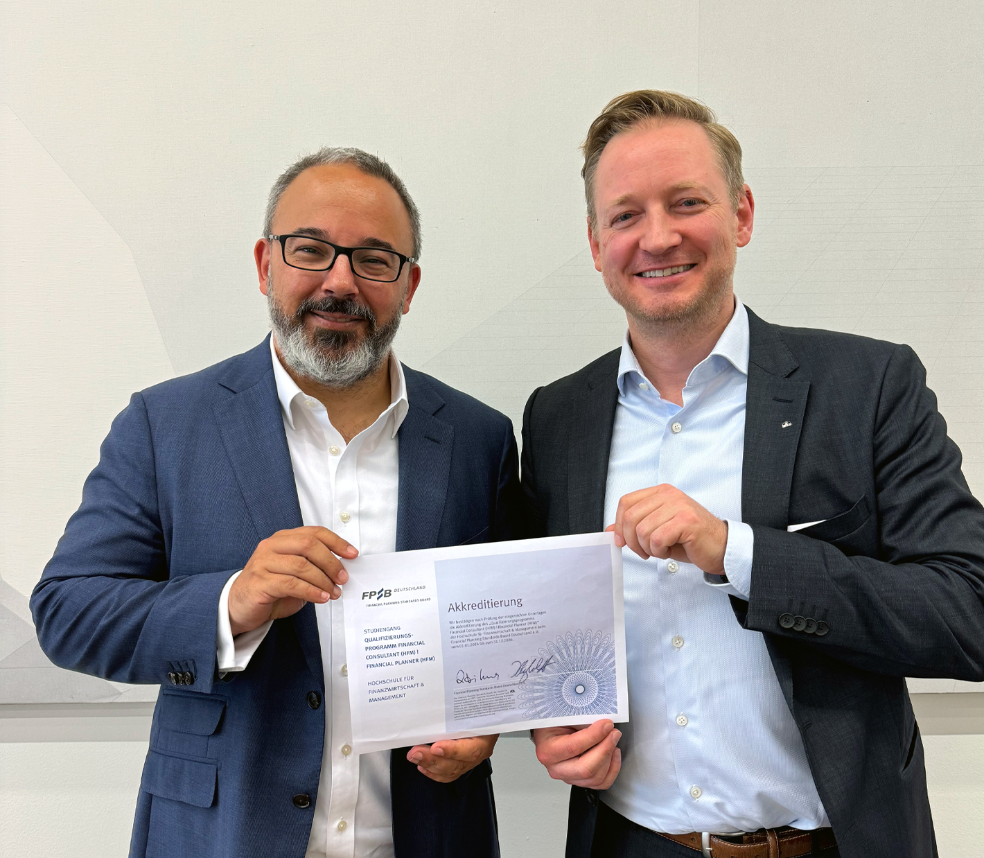 Das Financial Planning Standards Board Deutschland e.V. (FPSB Deutschland) hat das Qualifizierungsprogramm „Financial Consultant (HFM) | Financial Planner (HFM)“ der Hochschule für Finanzwirtschaft & Management zur Vorbereitung auf die CFP®-Zertifizierung akkreditiert.