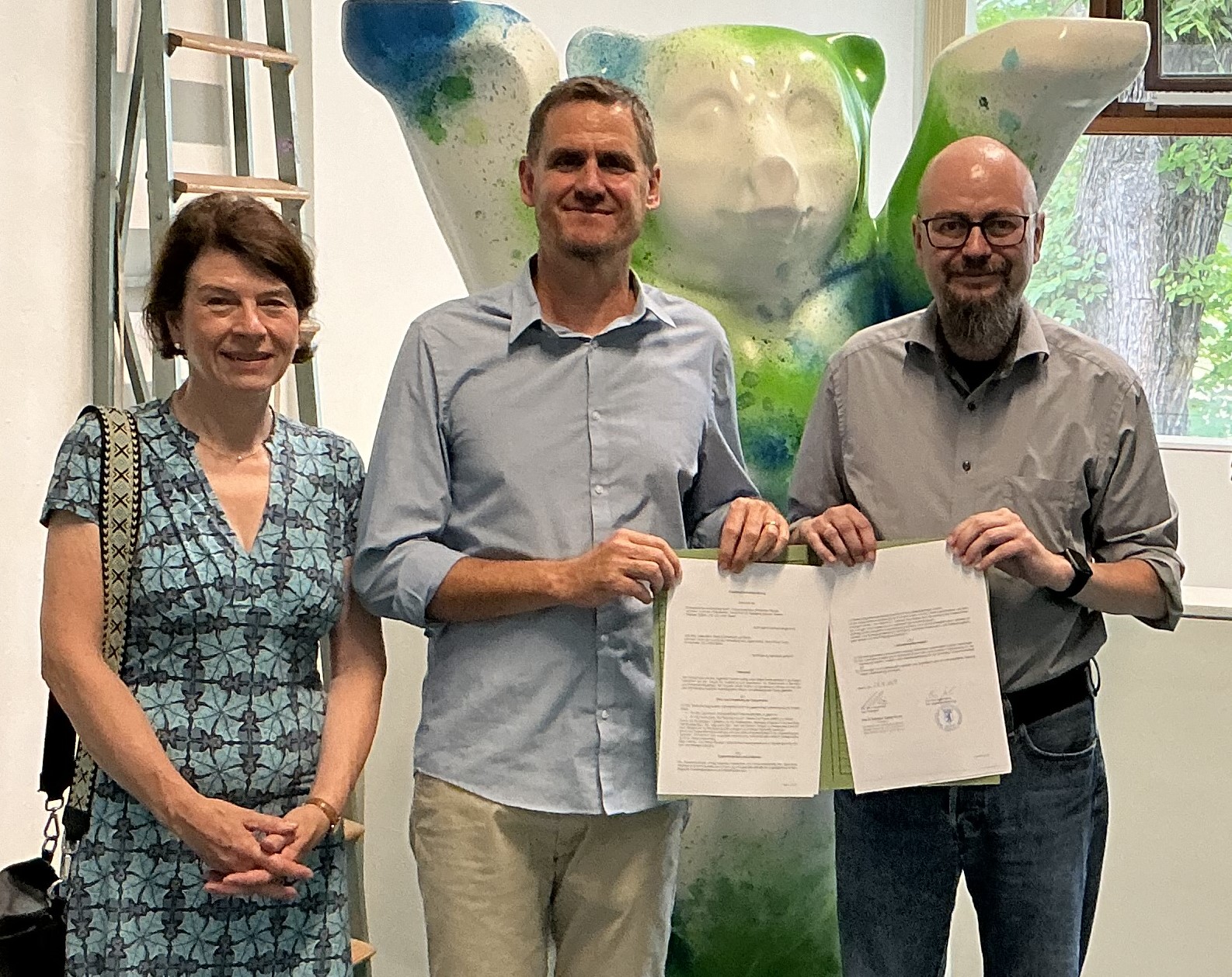 Der Präsident der EHB, Prof. Dr. Sebastian Schröer-Werner, unterzeichnete am vergangenen Freitag, dem 28. Juni 2024, gemeinsam mit dem Leiter des Jugendamts, Oliver Gulitz, eine Kooperationsvereinbarung zwischen dem Jugendamt Steglitz-Zehlendorf und der EHB. Die Vereinbarung zielt u. a. darauf ab, Ausbildung und Qualifikation von Studierenden der Sozialen Arbeit in den Bachelor- und Masterstudiengängen zu fördern und weitere praxisnahe Lernorte zu schaffen. Sie wurde federführend von Prof. Dr. Florian Hinken und Prof.in Dr. Angelika Peschke von der EHB und Heike Rosenfeldt aus dem Jugendamt Steglitz-Zehlendorf entwickelt.