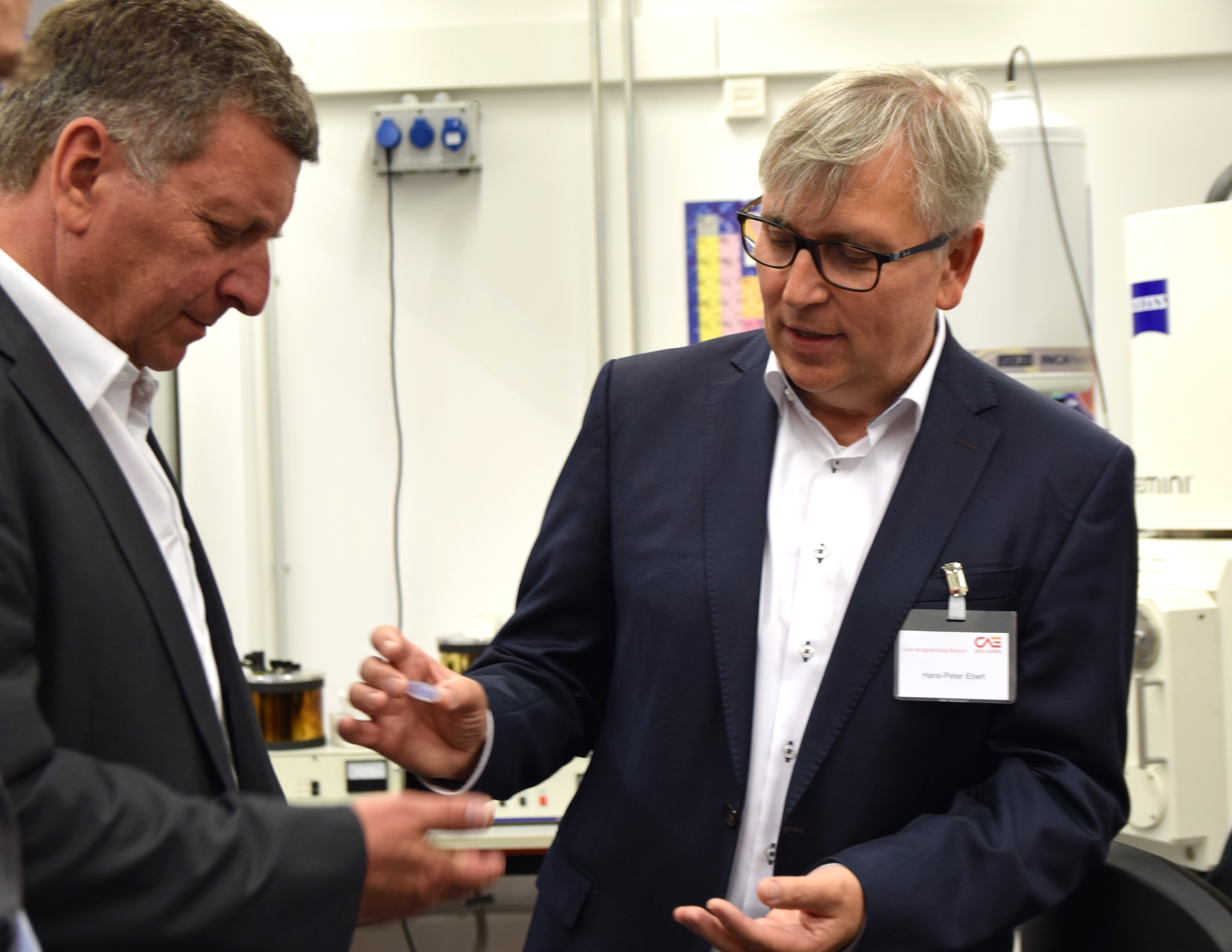 Der bayerische Staatsminister für Wohnen, Bau und Verkehr, Christian Bernreiter, MdL, nutzte seinen Besuch am Center for Applied Energy Research (CAE) in Würzburg um sich aus erster Hand über aktuelle Forschungs- und Entwicklungsthemen im Bereich klimaeffiziente Gebäude und Quartiere zu informieren.