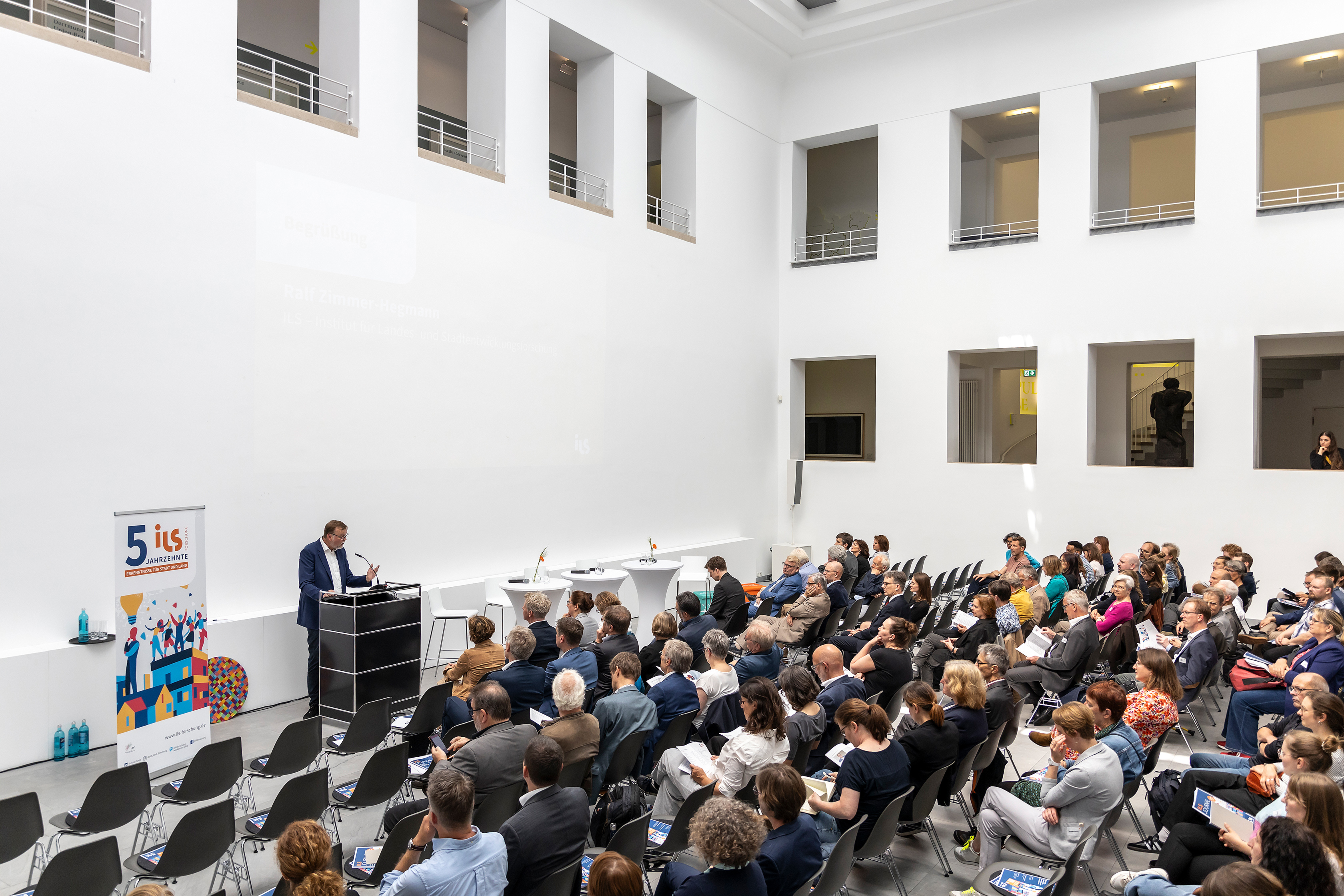 Sitz des Instituts war von Anfang an in Dortmund – zunächst am Königswall, später auf dem Gelände der ehemaligen Zeche Minister Stein und seit 2009 am Brüderweg in der Innenstadt. „Seit den Anfängen in den 1970er-Jahren hat sich das ILS zu einem wichtigen Akteur in unserer Stadt und weit darüber hinaus entwickelt. Die langjährige Verankerung des Instituts in Dortmund spiegelt sich in zahlreichen gemeinsamen Projekten und einer engen Zusammenarbeit wider. Ich schätze die wertvolle Expertise des ILS und die konstruktive Mitarbeit im Nutzerbeirat sowie in verschiedenen Netzwerken sehr“, würdigte Dortmunds Oberbürgermeister Thomas Westphal die Arbeit des ILS. Stellvertretend für die Stadt Dortmund überbrachte Bürgermeister Norbert Schilff die Glückwünsche während der Feier im Baukunstarchiv NRW.