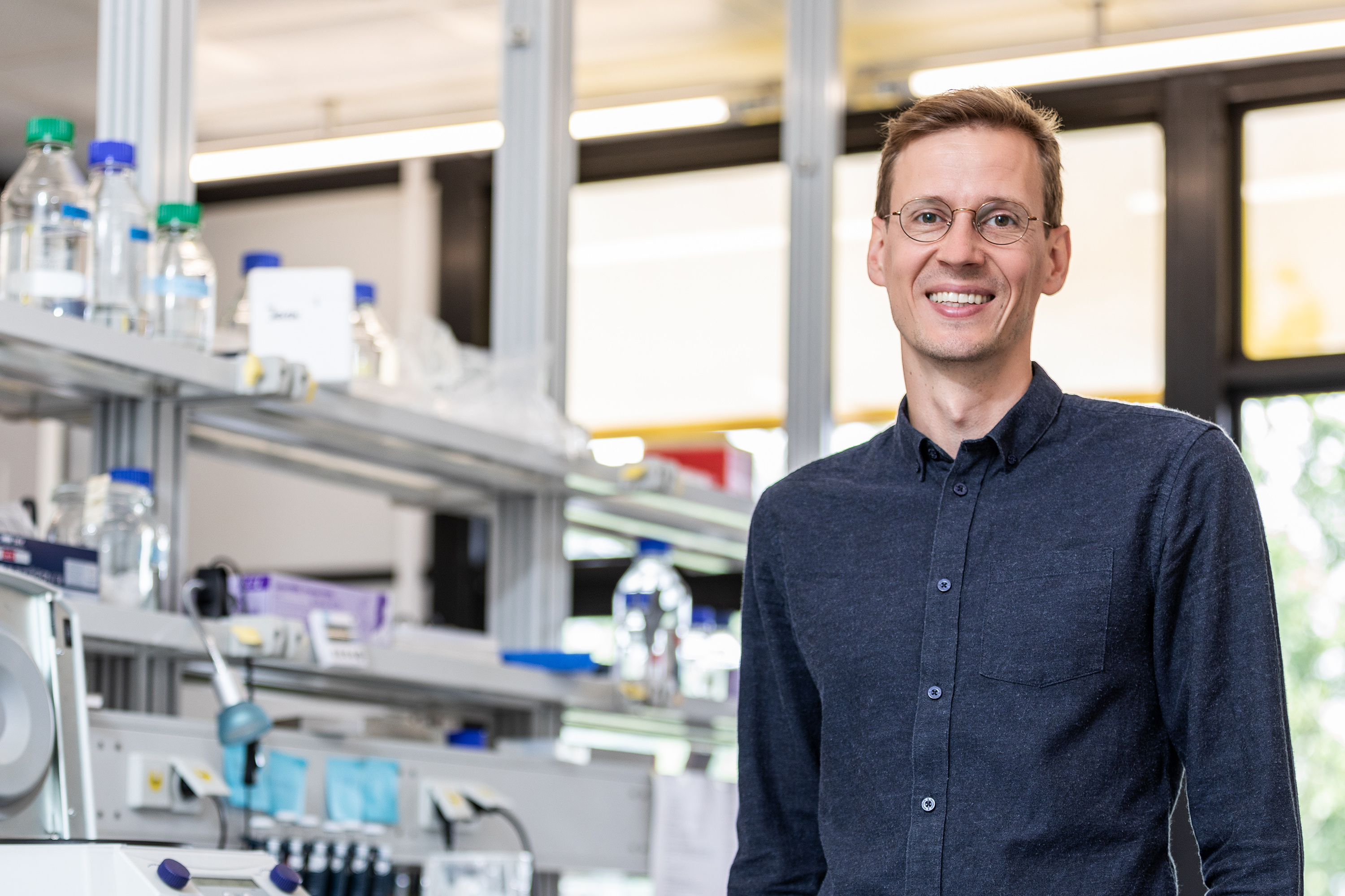 Als Modellsystem betrachten die Forschenden Larven des Zebrafischs. „Die eignen sich gut für die Forschung an Organen und Zellen, da sich die Organe schnell entwickeln und viele Entwicklungsschritte dem Menschen ähnlich, wenn nicht gar identisch sind“, sagt Christian Helker. Unter dem Laserscanning-Mikroskop können die Forschenden das Wachstum von Gefäßen ins sogenannte Neuralrohr (das sich zum Zentralen Nervensystem entwickelt) en detail beobachten. „Wir sehen live, wie die Signale in den Zellen eingeschaltet werden und die Zelle auf das Signal reagiert“, sagt Helker. Dazu müssen die Forschenden bestimmte Bestandteile in den Zellen genetisch und farblich markieren. Sie sprechen von sogenannten Biosensoren, die dann rot, grün oder gelb aufleuchten, wann immer ein Signalweg in der Zelle angeschaltet wird. „Wir können am Monitor verfolgen, wie die Gefäße in das Neuralrohr einwandern und welche Signalwege dafür erforderlich sind“, sagt Helker.