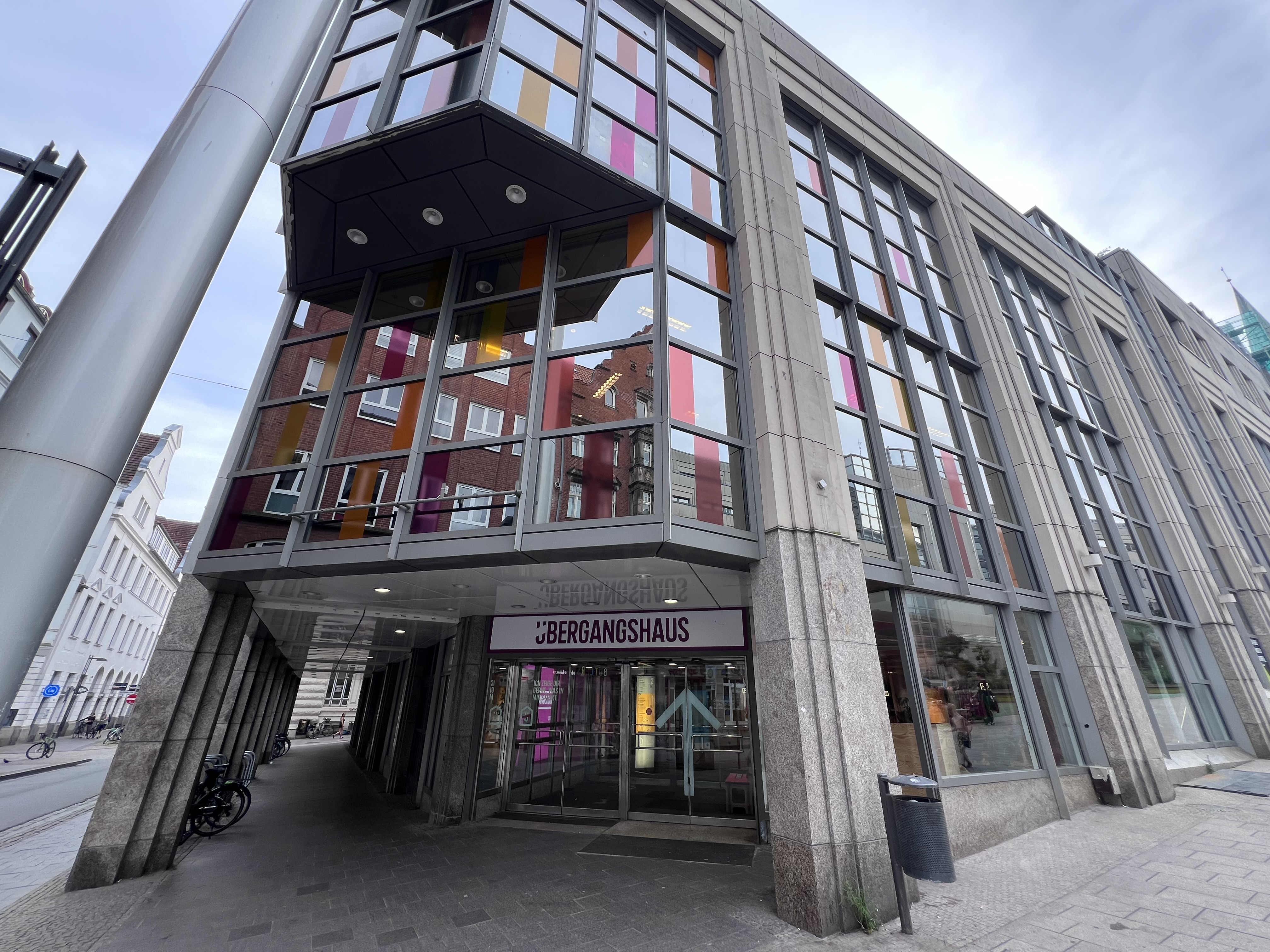 Das ÜBERGANGSHAUS lädt Lübecker*innen und Gäste der Hansestadt zum Verweilen, Erleben und Mitmachen ein. Auf insgesamt zwei Etagen des ehemaligen Warenhauses erwarten die Besucher*innen seit Juni 2024 moderne, konsumfreie Aufenthalts- und Coworking-Bereiche sowie ein vielfältiges Veranstaltungsangebot. Der neue Treffpunkt im Herzen Lübecks bietet Raum, verschiedenste Angebote aus Kultur, Bildung, Wissenschaft und Kreativszene zu erproben und weiterzuentwickeln – mitmachen ist ausdrücklich erwünscht. Das ÜBERGANGSHAUS ist regulär dienstags bis samstags von 10 bis 19 Uhr geöffnet. Die Zwischennutzung, die unter der Leitung der Lübeck und Travemünde Marketing GmbH (LTM) steht, dauert voraussichtlich bis Ende 2025. Danach beginnt der Umbau für die Nachnutzung des Gebäudes als Mixed-Use-Innovationszentrum für Bildung, Kultur und Dienstleistung.