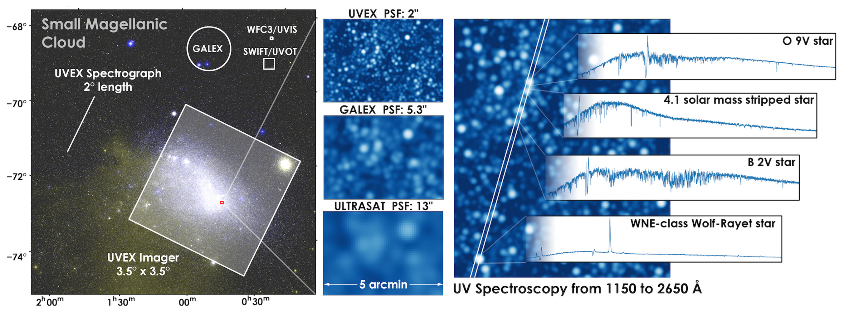 Seit dem Start von Hubble vor mehr als 30 Jahren hat es im Bereich der Optik große technologische Fortschritte gegeben. Außerdem kann Hubble aufgrund seiner begrenzten Fähigkeiten im fernen UV-Bereich und seiner langen Belichtungszeiten schwache UV-Quellen nicht erkennen. „UVEX wird sowohl im nahen als auch im fernen UV-Bereich messen und viel mehr Licht durchlassen als Hubble. So können wir mit UVEX, in der gleichen Belichtungszeit, Objekte, die viel schwächere UV-Signale ausgeben, beobachten“, sagt Götberg. In der Astrophysik gilt: Je schwächer die von einem Teleskop erfassten Objekte sind, desto umfassender ist der Datensatz (Englisch, deep dataset). Zu Beginn seiner Mission wird UVEX den gesamten Nachthimmel anhand der schwächsten UV-emittierenden Objekte kartieren. Auf diese Weise wird ein umfassender, homogener, Datensatz (deep dataset) im UV-Bereich erstellt. Nach seiner Fertigstellung wird dieser Datensatz als Gemeinschaftsressource dienen, die den Astronom:innen für künftige Forschungen zur Verfügung steht. „Das ‚deep mapping‘ [Tiefenkartierung] im UV-Bereich ist besonders für heiße Sterne wichtig, da sie nicht immer die hellsten sind“, fügt Götberg hinzu. Am wichtigsten für die Arbeit ihrer Gruppe am ISTA ist, dass UVEX in der Lage sein wird, den gesamten Massenbereich von Heliumsternen zu kartieren. Heliumsterne sind heiße und kompakte Sterne, die von einem Begleitstern ihrer Wasserstoffhülle beraubt wurden.