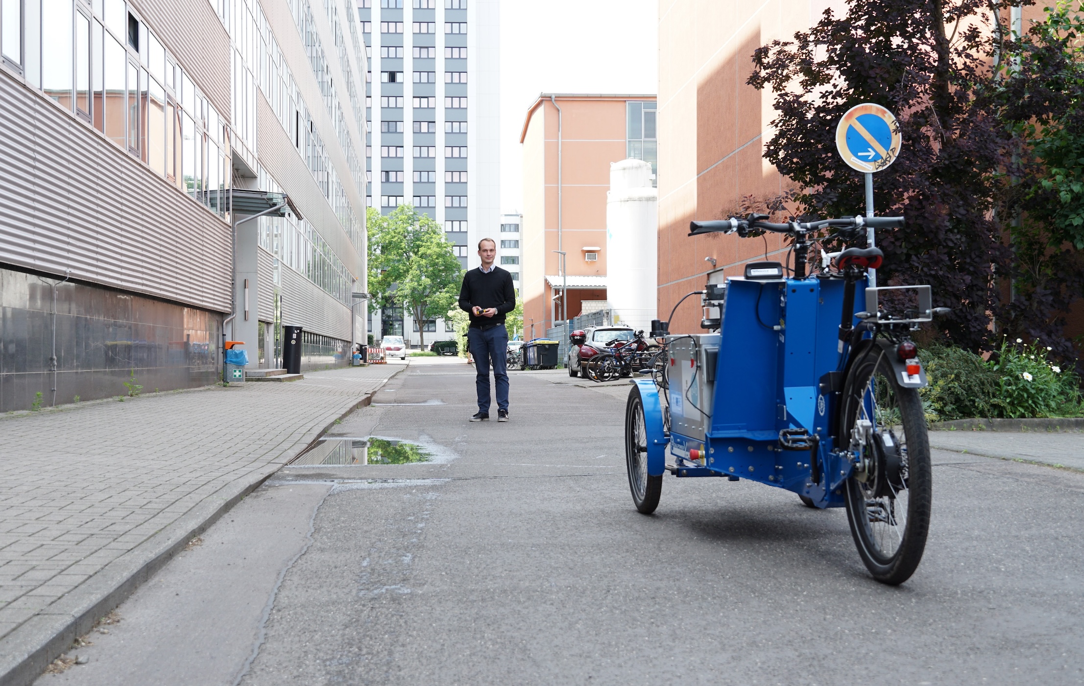 Innerhalb von „Aura-Hirn 2“ entwickeln die Forschenden ein universell einsetzbares Steuerungsmodul für automatisierte Mikromobile, wie autonome Lastenräder. Mit dieser neuen Software sollen diese „Verkehrsteilnehmer“ sich künftig sicherer und weniger anfällig im Straßenverkehr bewegen können und die Interaktion mit Passanten und Passantinnen soll deutlich verbessert werden. Ein Anwendungsszenario ist beispielsweise der Einsatz in der Stadtreinigung. „Personen, die Kleinabfall sammeln oder Mülleimer leeren, verfolgt das Lastenrad eigenständig. Der große Vorteil ist: Beide Hände sind zum Arbeiten frei“, beschreibt Prof. Scholz ein mögliches Einsatzfeld. „Und, weil das Rad herbeigerufen werden kann, können unnütze Leerwege eingespart werden.“ Im Herbst 2024 sind zwei Feldtests mit namenhaften Industriepartnern avisiert.
