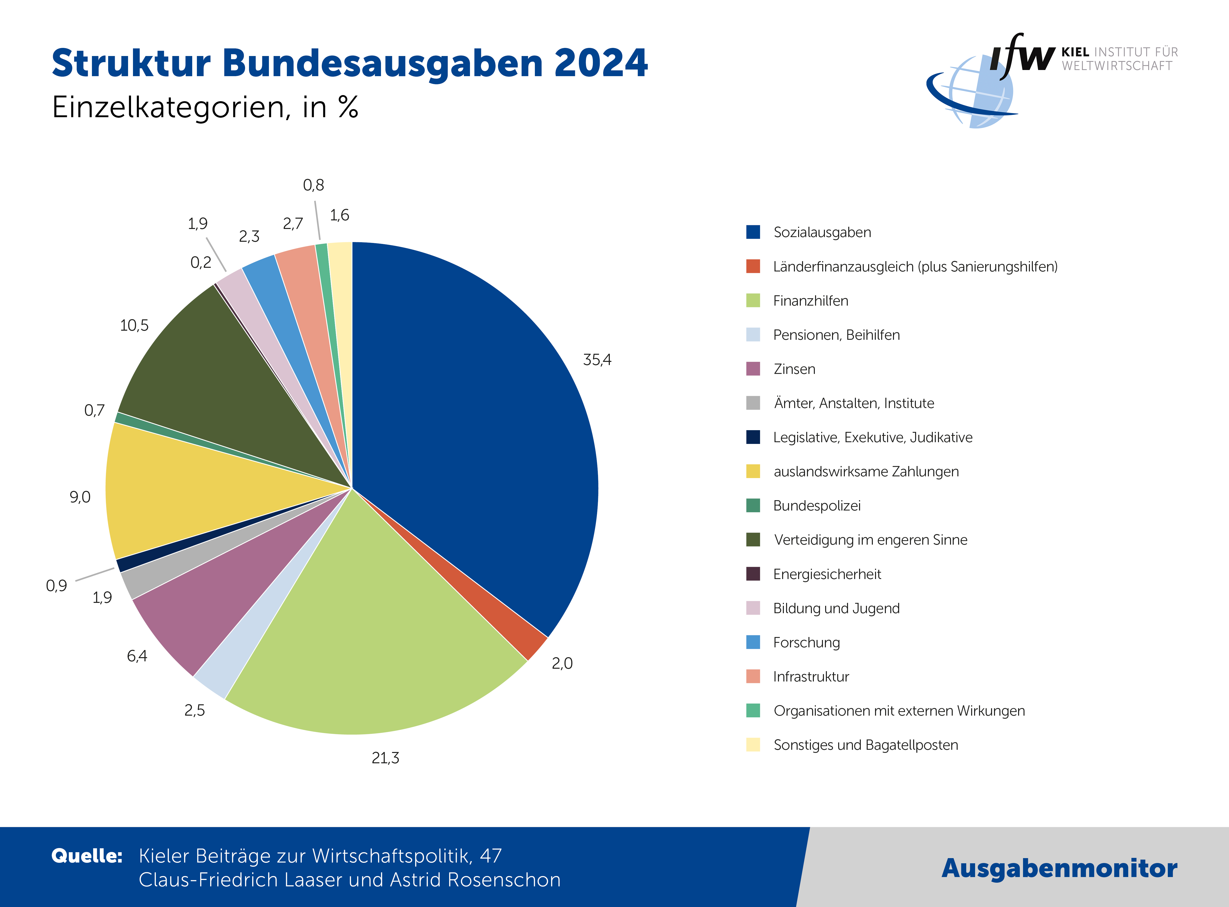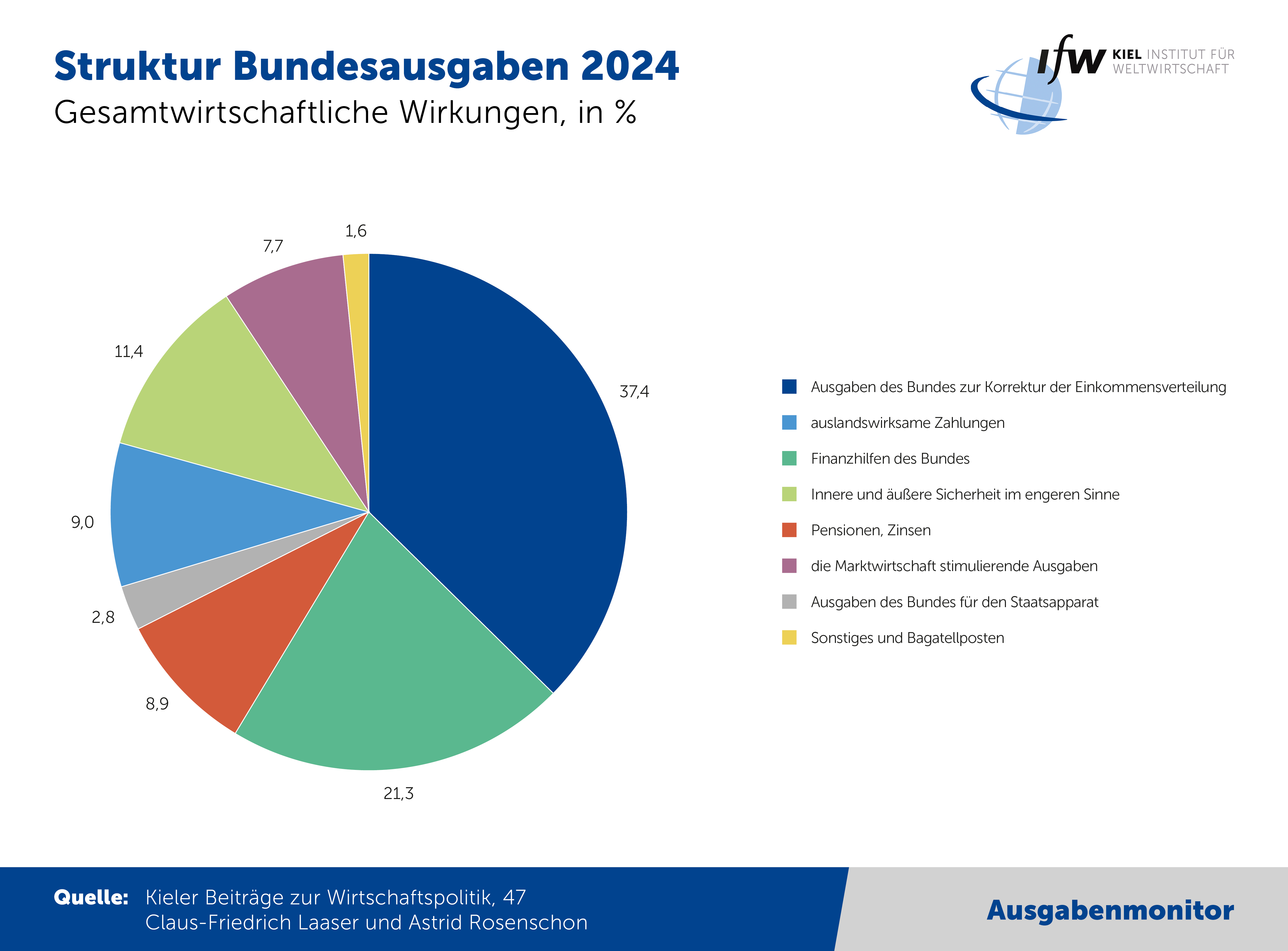 Der Kieler Bundesausgabenmonitor 2024: Eine empirische Strukturanalyse des Bundeshaushalts: https://www.ifw-kiel.de/de/publikationen/der-kieler-bundesausgabenmonitor-2024-eine-empirische-strukturanalyse-des-bundeshaushalts-33123/