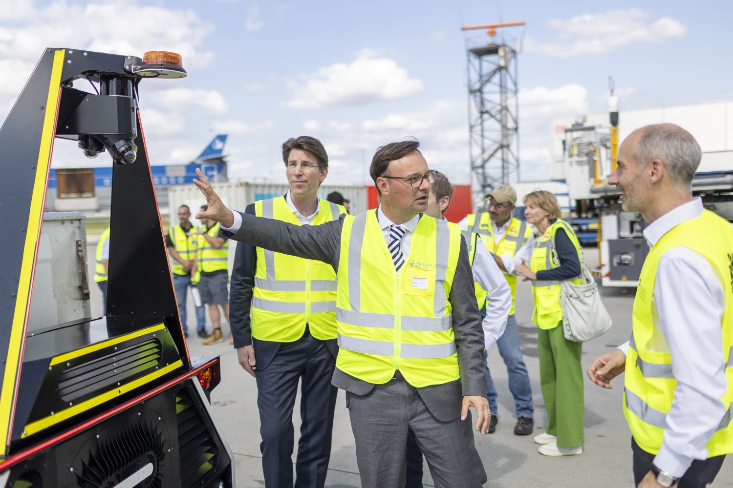 „Die Demonstration des autonomen Fahrzeugs am Flughafen Stuttgart zeigt deutlich, dass das Digitale Testfeld Air Cargo einen unmittelbaren Beitrag zur Weiterentwicklung der Frachtabfertigung auf dem Vorfeld leistet. Durch den Einsatz autonomer Fahrzeuge können Prozesse effizienter und sicherer gestaltet werden. Dies ist ein entscheidender Schritt hin zu einer digitalen und vernetzten Luftfrachttransportkette“, betont Staatssekretär Luksic.