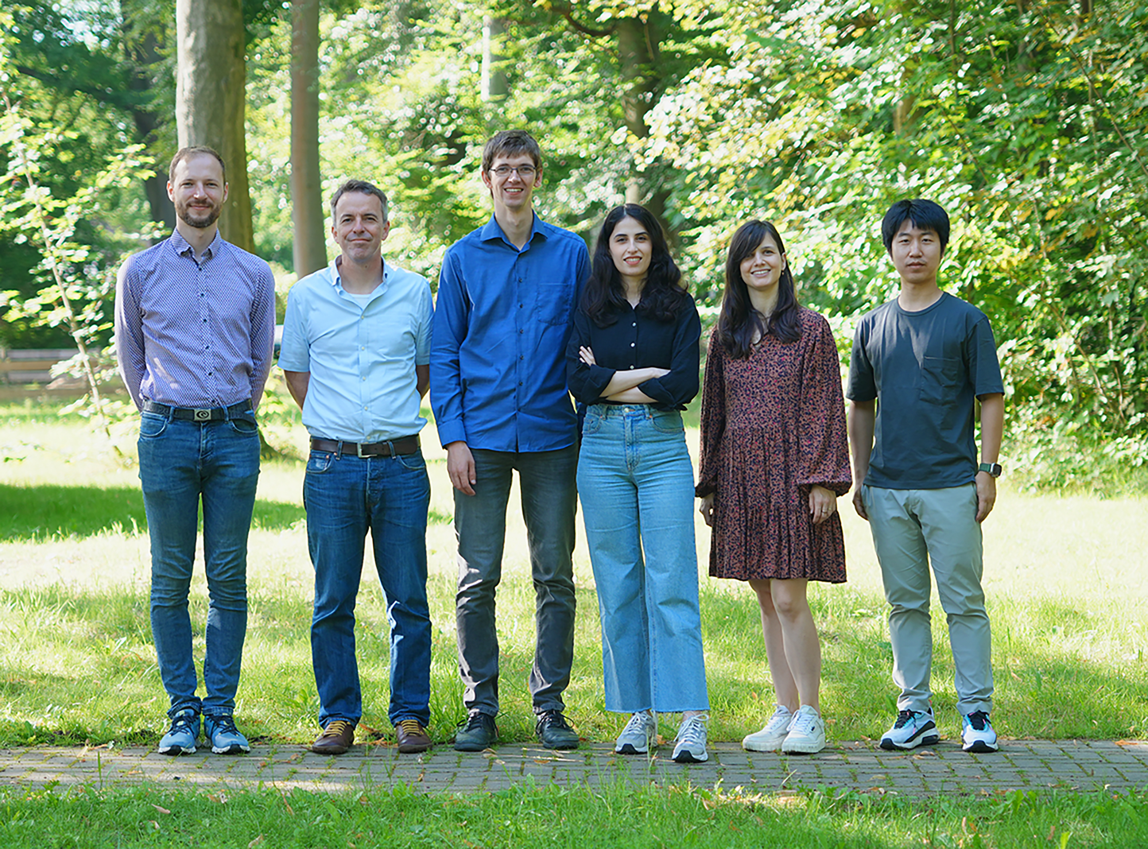 Erfolgreiche Forschung ist Teamarbeit: Simon Jantac, Holger Großhans, Christoph Wilms, Gizem Özler, Natasa Lalovic (Technologietransfer) und Wenchao Xu (v.l.n.r.) haben erfolgreich den „Proof of Concept Grant” des Europäischen Forschungsrats eingeworben. (Foto: PTB)