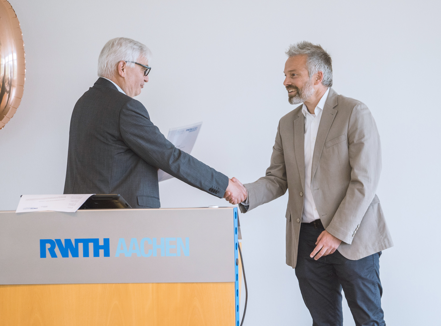 Prof. Dr.-Ing. Albert Moser, Dekan der Fakultät für Elektrotechnik und Informationstechnik, überreichte Professor Adrat anlässlich der Feierstunde zum 60-jährigen Bestehen des IKS die Ernennungsurkunde und gratulierte herzlich. Zeit und Ort seiner Ernennung kamen dabei für den FKIE-Wissenschaftler völlig unerwartet: „Ich wusste zwar, dass der Prozess im Hintergrund läuft“, so Prof. Adrat. „Aber ich hätte nie damit gerechnet, dass meine Ernennung am Tag der 60-Jahr-Feier erfolgt. Da haben alle Beteiligten erfolgreich Stillschweigen bewahrt.“ Prof. Adrat ist somit der 25. Professor in der 60-jährigen Geschichte des Aachener Instituts.