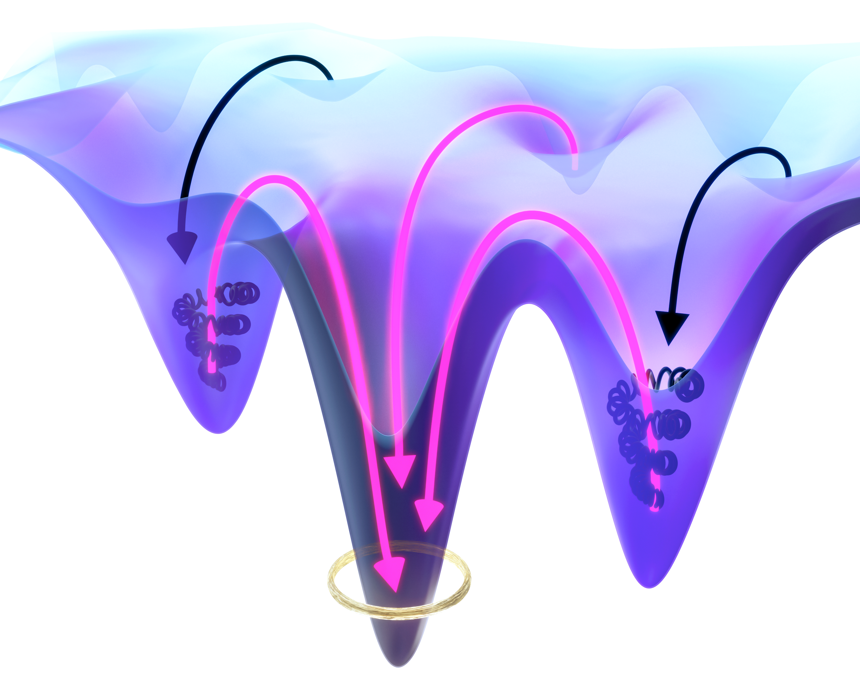 In both physics and biology, systems aim to achieve a state of minimum energy: when a ball rolls down a ramp and over an uneven sandy surface, it eventually comes to a stop in a hollow. Without adding more energy from the outside, it will not start moving again, even if there is a slope or deeper hollow close by to lower the energy level even further. In biology, this phenomenon is also known from protein folding. Especially in complex systems, proteins might fall into a local energy minimum before completing their assembly. This hampers their function and causes them to be trapped in a static equilibrium state from which they cannot escape.