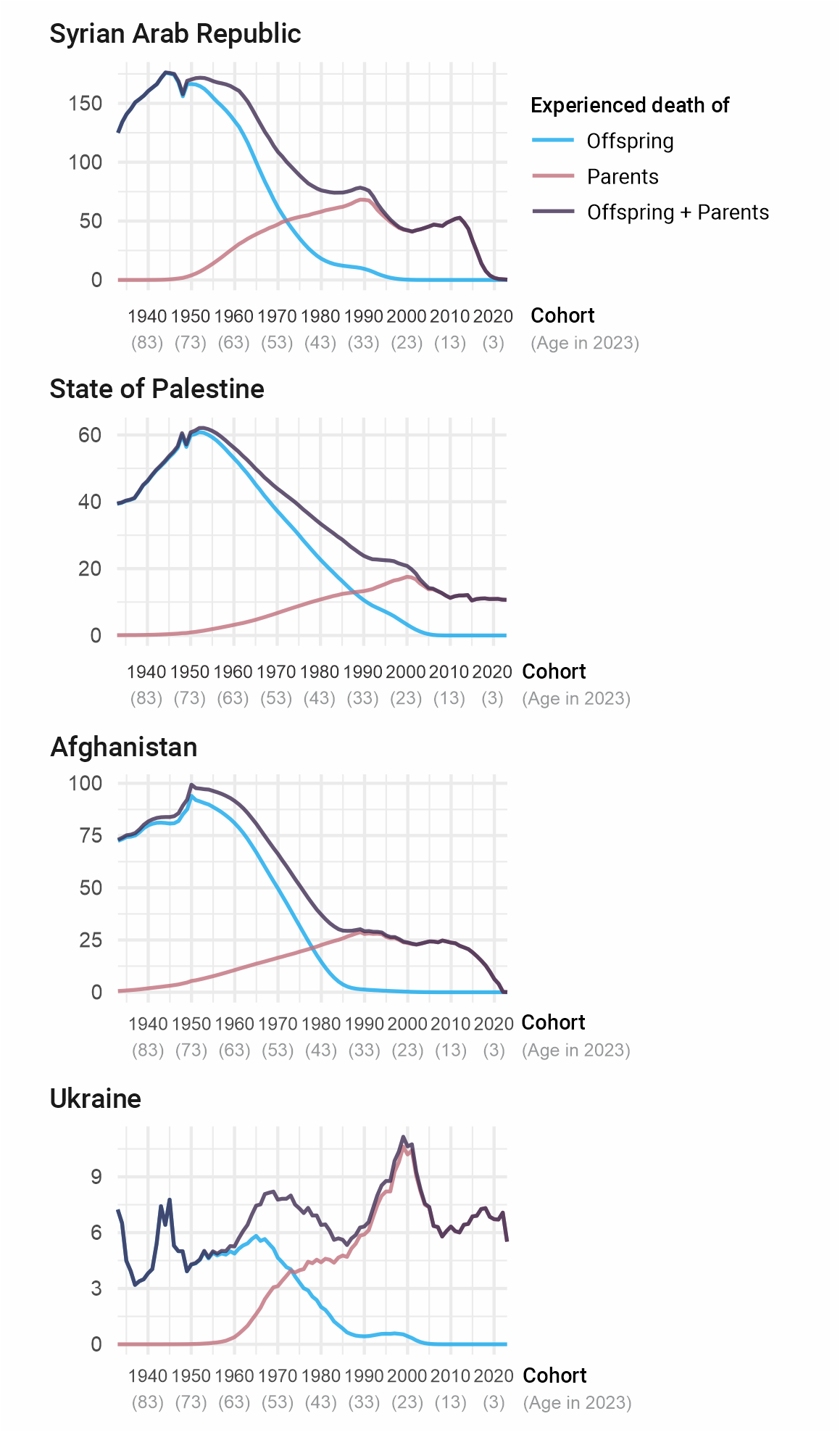 The study highlights the most lethal conflicts of the recent years: Syria, the State of Palestine, Afghanistan, and Ukraine. “We find that these populations will experience considerable levels of bereavement regardless of how these conflicts evolve in the future," says Alburez-Gutierrez.