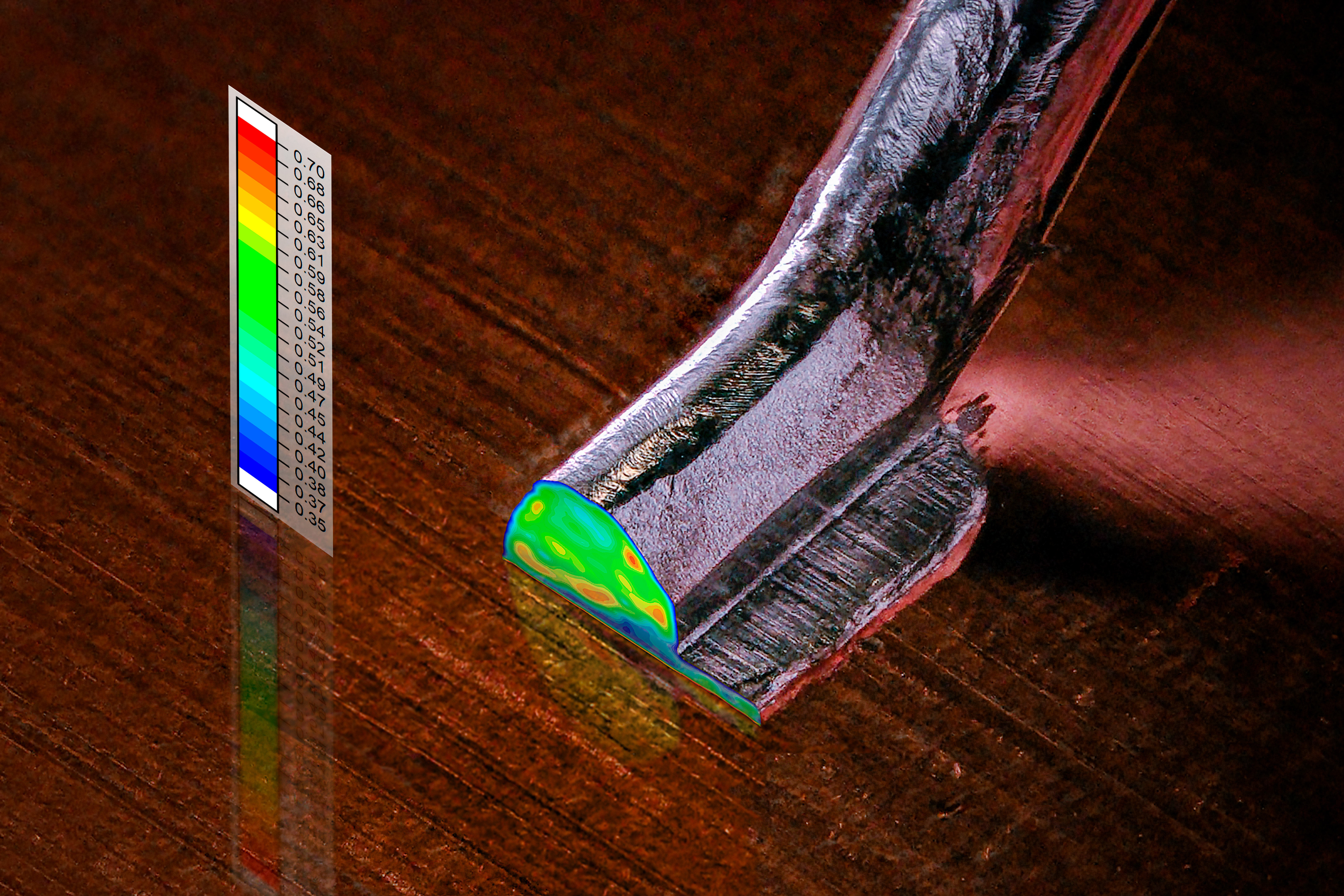 The specialists at Fraunhofer IZM and the Technical University of Berlin set out to remedy this situation. They subjected a number of materials and alloys to a battery of shear tests and created a so-called metallographic analysis of the resulting damage patterns during different points of the shearing process. For their substrate, the researchers picked highly pure copper, which is known to be harder than the tested wire materials. This meant that the shearing damage would be concentrated on the wedge and not be obscured by a failure of the substrate. For their simulation of the damage mechanics in the shear tests, the necessary properties of the materials were established in actual tensile tests and simulations using specialized open source software. It allowed the researchers to establish the damage mechanics during shear testing in relation to the chosen wire material and any preexisting deformation from the original bonding process. The results obtained from this were compared to the empirical shear tests, giving the researchers a better insight into what happens to different materials and material combinations during shearing.