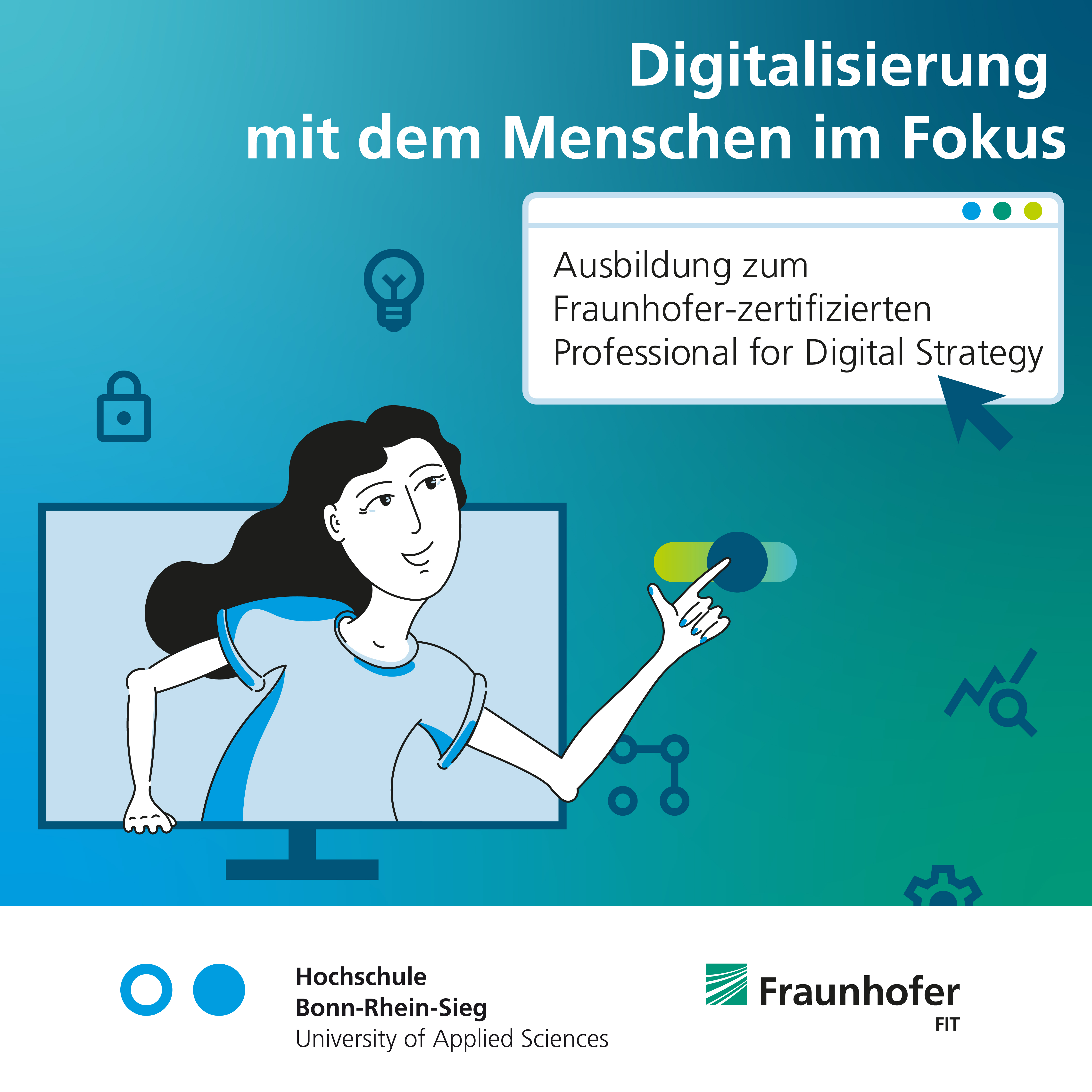 Das Fraunhofer-Institut für Angewandte Informationstechnik FIT kündigt die Einführung einer neuen Weiterbildung zum Professional for Digital Strategy an, die gemeinsam mit der Hochschule Bonn-Rhein-Sieg entwickelt wurde. Die Weiterbildung ist mit 20 ECTS auf den Masterstudiengang »Innovations- und Informationsmanagement« der Hochschule anrechenbar und richtet sich an Fach- und Führungskräfte, die ihre Fähigkeiten in der Entwicklung und Umsetzung menschenzentrierter Digitalisierungsstrategien ausbauen möchten.