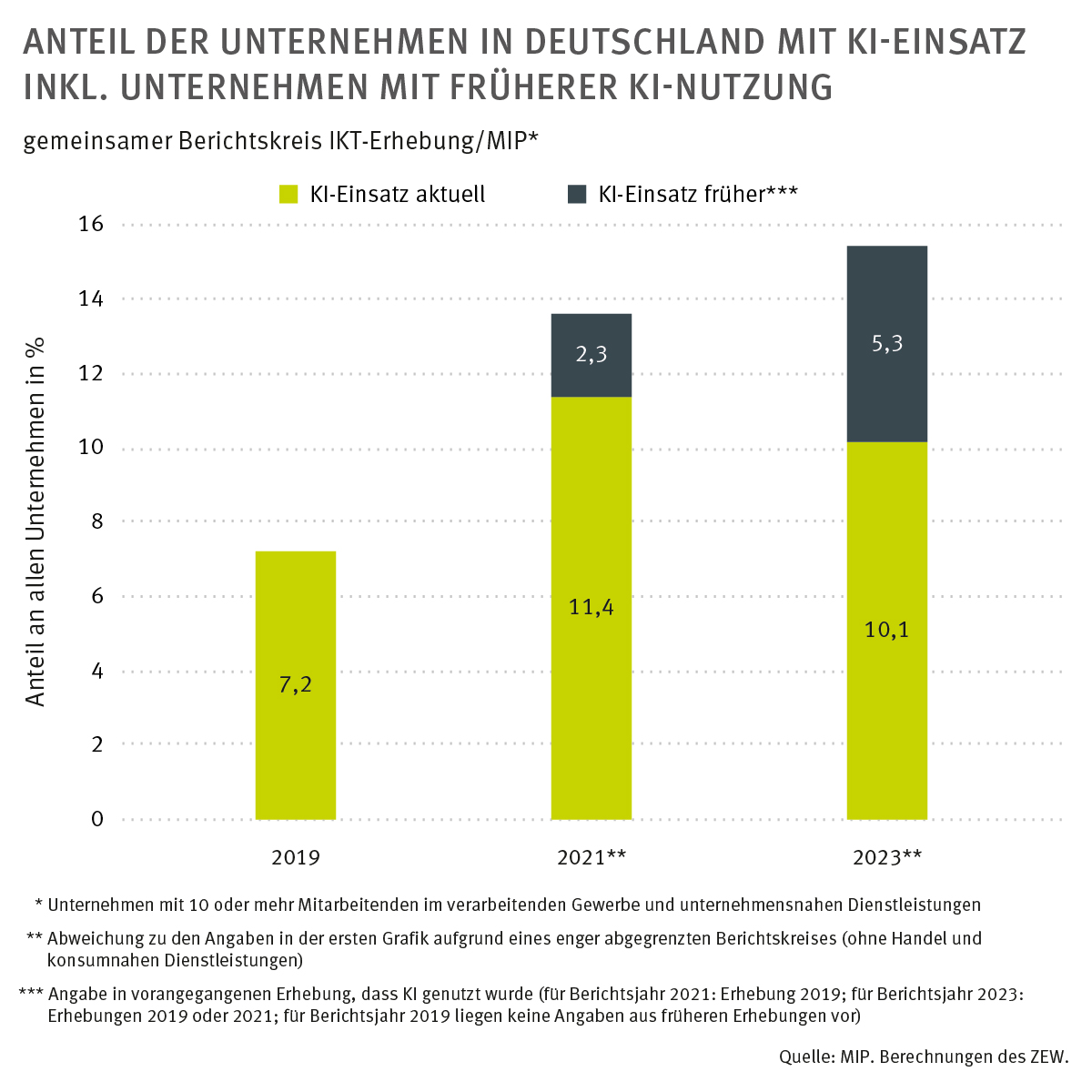 2) Daten des Mannheimer Innovationspanels (MIP) des ZEW zur KI-Nutzung und zu Unternehmensstrategien,