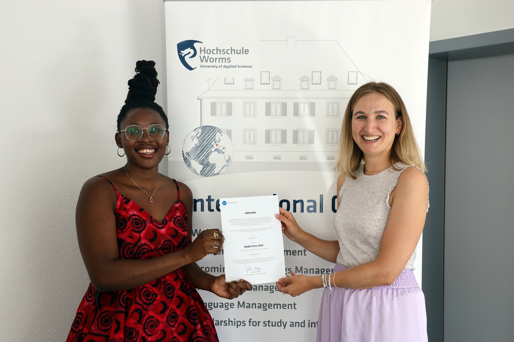 Die Hochschule Worms freut sich, Suhaidatu Dramani aus Ghana als diesjährige Preisträgerin des DAAD-Preises für hervorragende Leistungen im Studium und besonderes soziales Engagement ausländischer Studierender auszuzeichnen. Die Master-Studentin im Studiengang Entrepreneurship hat nicht nur durch ihre akademischen Leistungen überzeugt, sondern auch durch ihren unermüdlichen Einsatz für soziale Gerechtigkeit und interkulturellen Austausch.