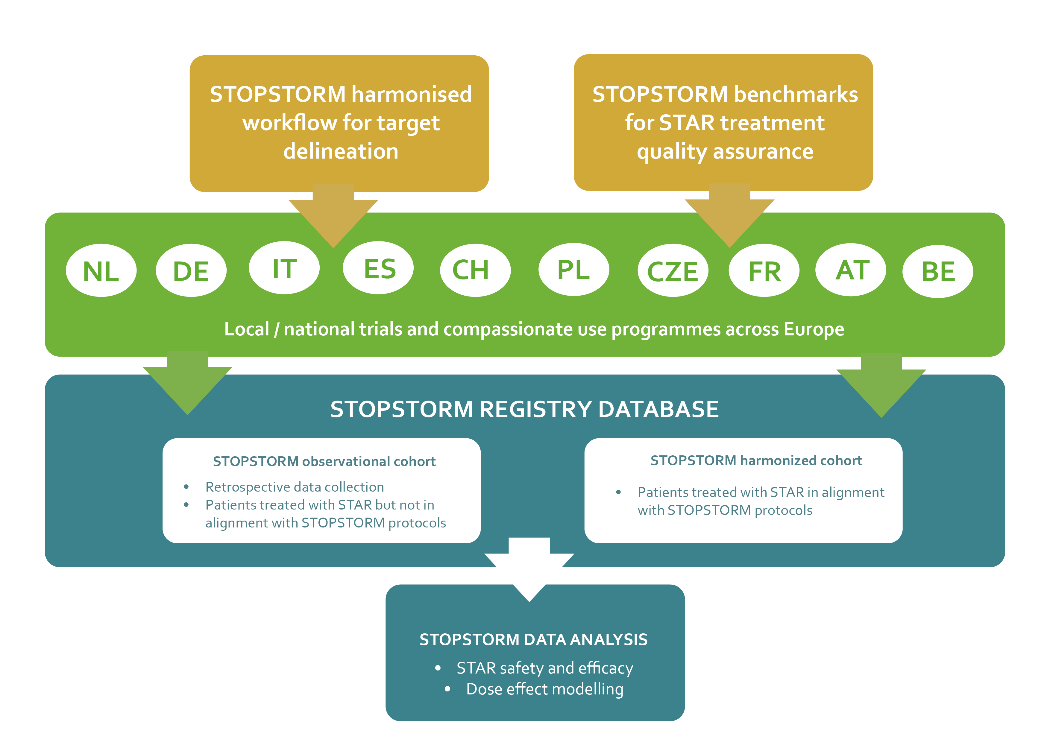 Seit Ende 2022 untersucht das Konsortium im Rahmen einer europaweiten Registerstudie die stereotaktische Strahlentherapie als neue Behandlungsoption für Patientinnen und Patienten mit austherapierten Herzrhythmusstörungen (engl. STAR = Stereotactic Arrhythmia Radioablation). Über 30 Partnerorganisationen in mehr als zehn europäischen Ländern liefern hierfür Behandlungsdaten. Bislang wurden 170 der geplanten 300 Patientinnen und Patienten mit Herzrhythmusstörungen in den Herzkammern, sogenannten ventrikulären Tachykardien, in das Register aufgenommen. Anhand dieser Daten sollen Indikation, Sicherheit und Wirksamkeit der STAR-Behandlung überprüft werden. Die deutschen STOPSTORM-Zentren befinden sich in Kiel, Lübeck, Berlin, Hannover, Mannheim, Leipzig, Dresden, Chemnitz und München.