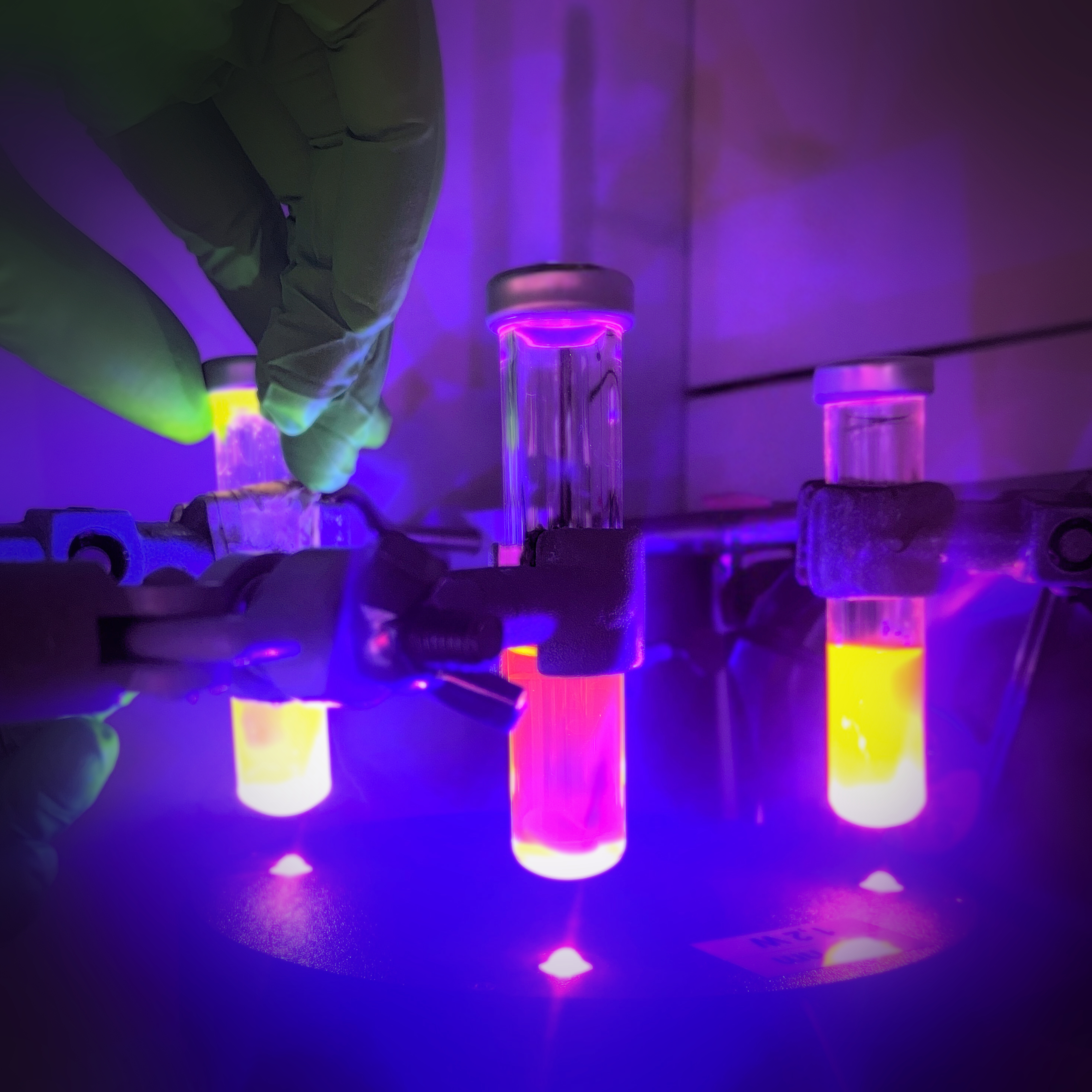 Chemische Reaktionen benötigen Energie, um abzulaufen. In unserem Fall liefert das Licht die Anfangsenergie, und alle nachfolgenden Reaktionen laufen energetisch abwärts ab. Was bororganische Moleküle für Chemiker*innen so wertvoll macht, ist die Hybridisierung des Bors — es kann zwischen verschiedenen atomaren Konfigurationen wechseln. Die eine ist flach (trigonal-planar), die andere pyramidal (tetraedrisch), mit jeweils gegensätzlichen Eigenschaften. In seiner flachen Form zieht Bor negativ geladene Moleküle an, während in seiner pyramidalen Form die Atome in der Nähe des Bors eine hohe Elektronendichte aufweisen. LUMIBOR wird diese unterschiedlichen Eigenschaften nutzen, um die chemischen Reaktionen nach der Absorption eines Photons zu kontrollieren. Die Anpassung des Hybridisierungszustands wird der Schlüssel zur Entdeckung neuer Reaktionswege sein. Da Licht nicht nur präzise, sondern auch kostengünstig und nachhaltig ist, werden wir für die Experimente gewöhnliche LEDs oder Aquarienlampen verwenden.