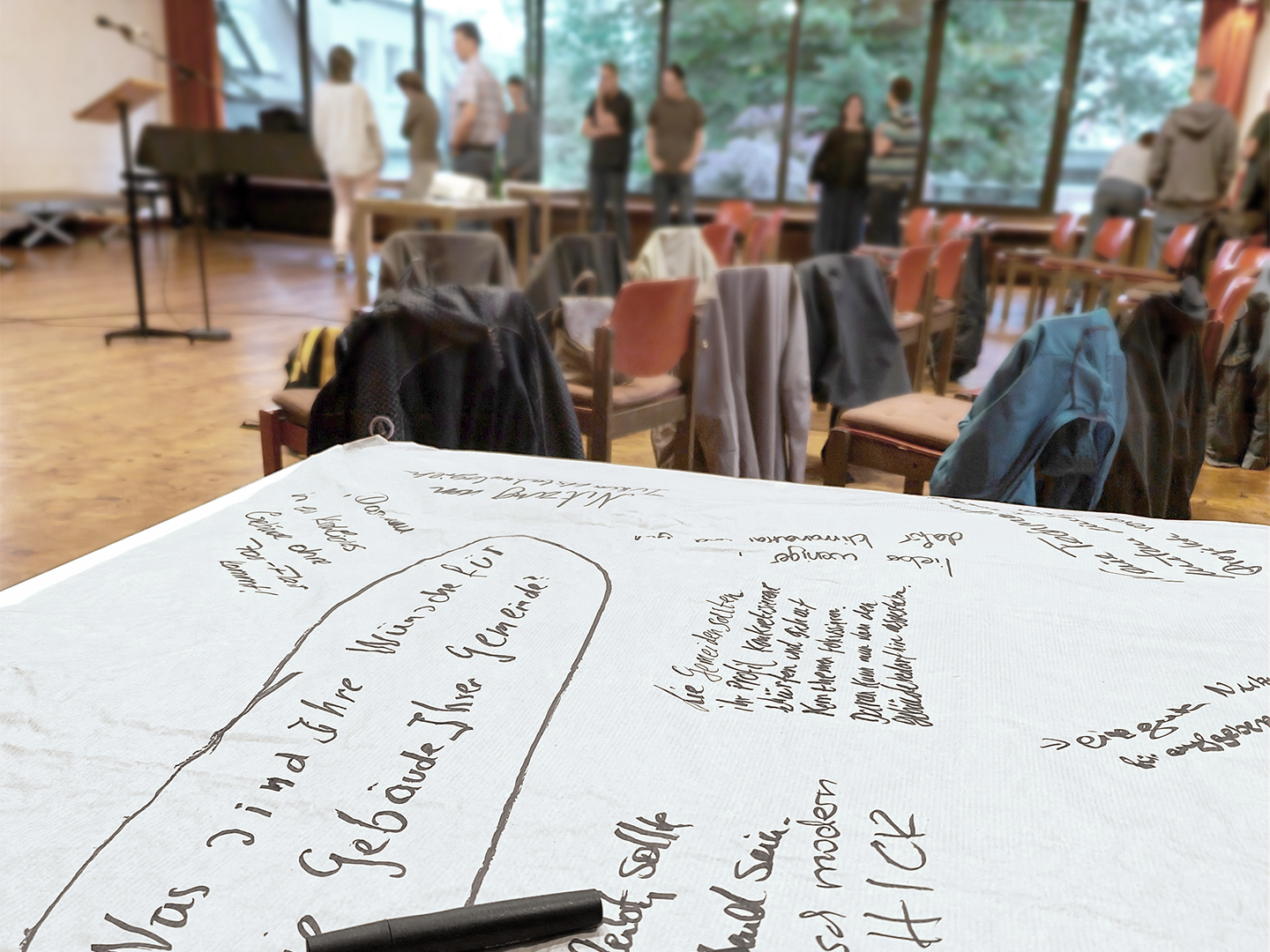Zusammen mit dem Fraunhofer-Institut für Umwelt-, Sicherheits- und Energietechnik UMSICHT wird es insgesamt sechs Workshop-Runden geben – teils in den Gemeinden, teils in großer Runde mit allen evangelischen Kirchengemeinden im Stadtgebiet. »Die erste Workshop-Runde ist abgeschlossen. Wir hatten in den Gemeinden sehr gute, offene Gespräche. Unser Ziel war es, erste Gedanken zu sammeln, Daten zu erfassen und zu verstehen, welche Bedeutung die einzelnen Gebäude in den Gemeinden haben. Zudem wollten wir mehr über die Ängste, Bedürfnisse und Wünsche für die Zukunft erfahren«, erklärt Projektleiterin Simone Krause des Fraunhofer UMSICHT.