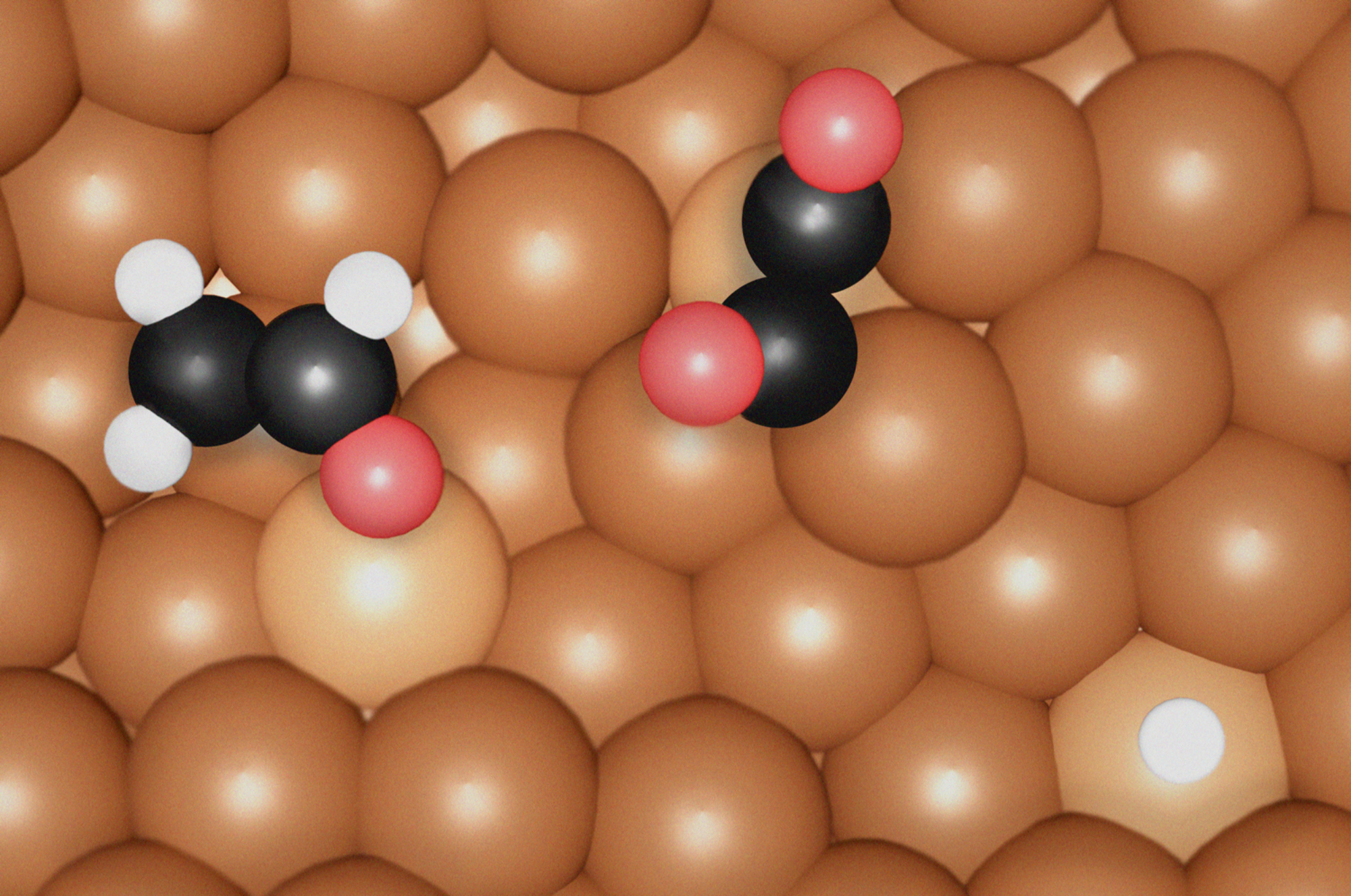 Das Forschungsteam unter der Leitung von Gruppenleiter Dr. Arno Bergmann, Prof. Dr. Beatriz Roldán Cuenya und Prof. Dr. Núria López nutzte in-situ oberflächenverstärkte Raman-Spektroskopie (SERS) und Dichtefunktionaltheorie (DFT), um die molekularen Spezies auf Kupfer (Cu)-Elektrokatalysatoren zu untersuchen und so Einblicke in den Reaktionsmechanismus zu gewinnen. Ihre Ergebnisse zeigen, dass die Bildung von Ethylen erfolgt, wenn spezifische Intermediate, bekannt als *OC-CO(H)-Dimere, an unterkoordinierten Cu-Stellen entstehen. Im Gegensatz dazu erfordert die Produktion von Ethanol eine stark komprimierte und verzerrte Koordinationsumgebung der Cu-Stellen, mit dem Schlüsselintermediat *OCHCH2.