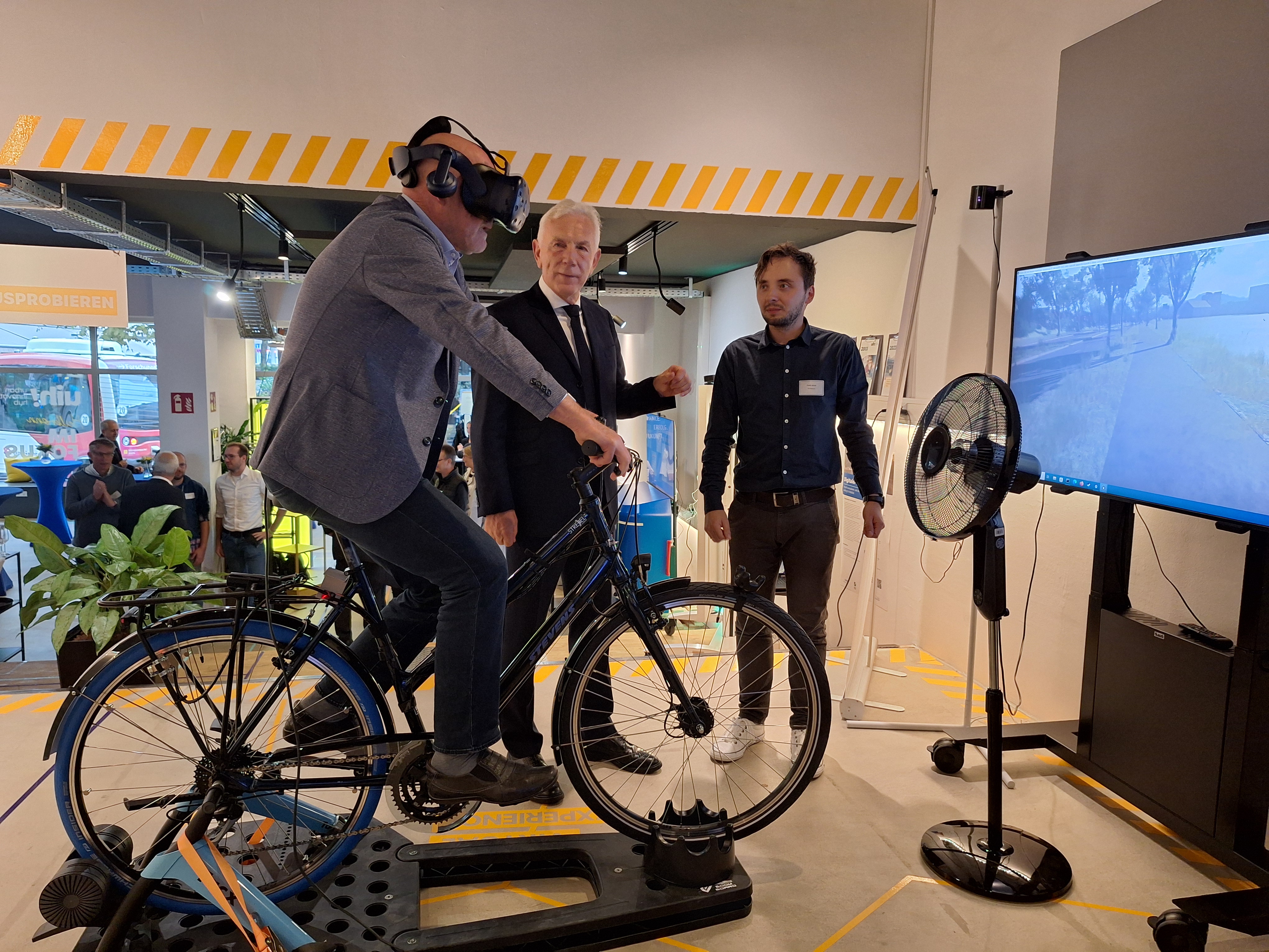 Zwischen virtueller und realer Welt: Minister Hermann radelt in die Zukunft der Mobilität