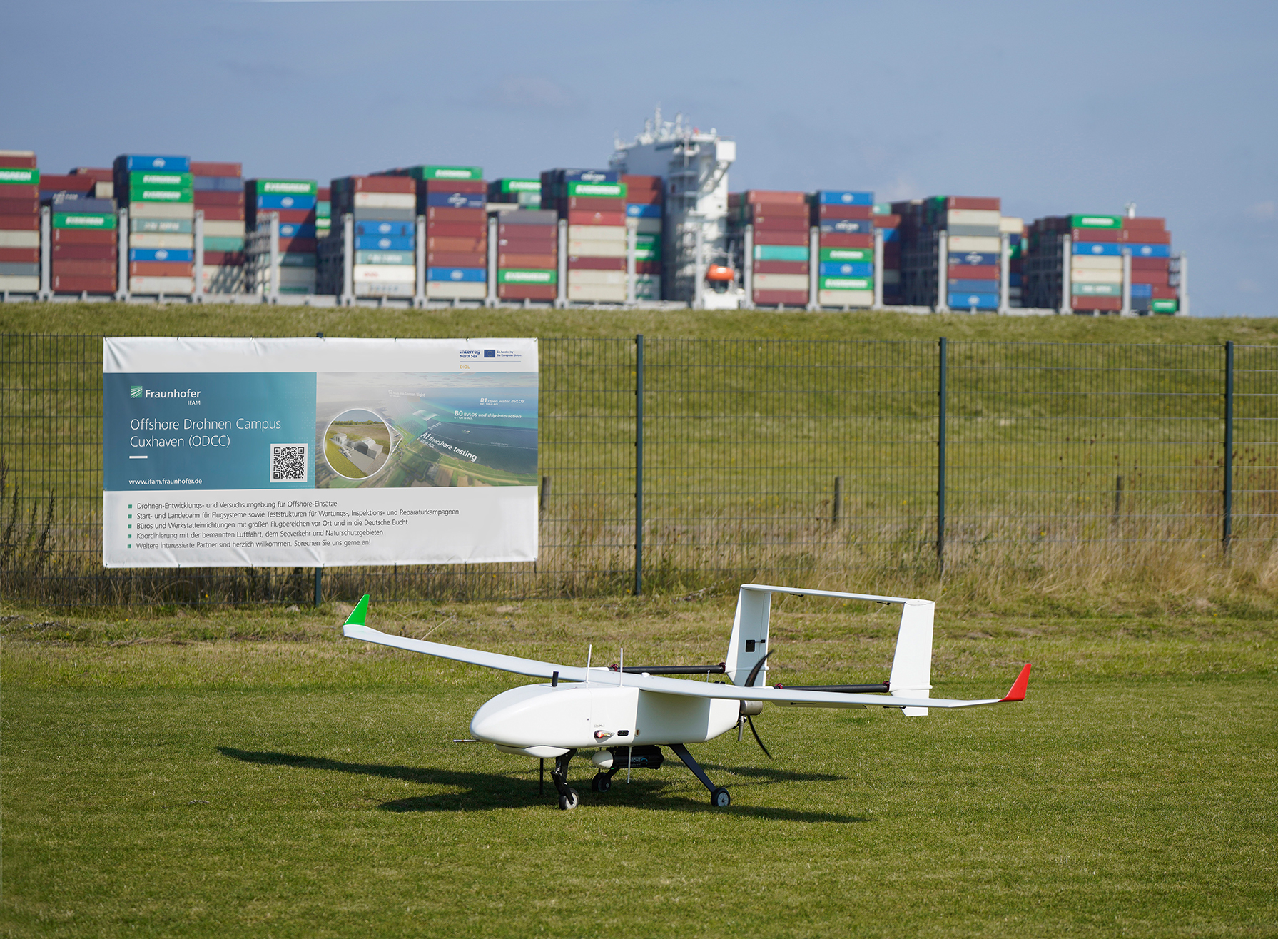 Auf Helgoland stehen mit dem Testzentrum für Maritime Technologien verschiedene Forschungsareale auf der Insel und im Hafen zur Verfügung und nur wenige Seemeilen vor der Nordseeinsel ermöglicht ein drei Quadratkilometer großes Testfeld, Entwicklungen unter Offshore-Bedingungen zu erproben. Zudem steht das Forschungsschiff »Joseph von Fraunhofer« der Fraunhofer-Gesellschaft durch den Liegeplatz in Cuxhaven für die Begleitung von Tests auf dem Wasser zur Verfügung. Die genannten Erprobungsmöglichkeiten unter Realbedingungen bieten bundesweit einzigartige Möglichkeiten für die durchgängige Entwicklung und Qualifizierung von Offshore-Drohnen und die Standardisierung von Verfahrensweisen.
