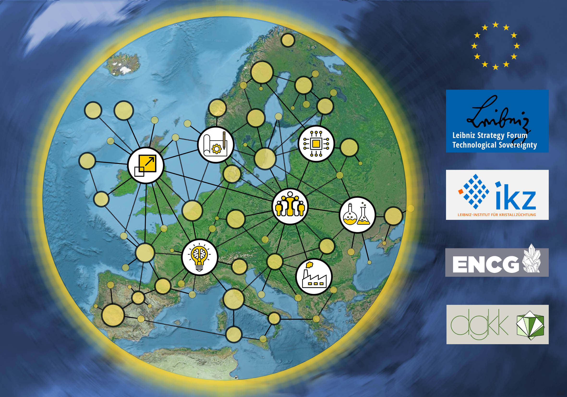 Gemeinsam mit dem European Network on Crystal Growth (ENCG) und der Deutschen Gesellschaft für Kristallzüchtung & Kristallwachstum (DGKK) wurden von den Mitgliedsorganisationen der europäischen Kristallzüchtungs-Community Beiträge zu akademischen und industriellen Aktivitäten im Bereich der Kristalle für Elektronik und Photonik gesammelt und verarbeitet. Hieraus wurde eine Statusanalyse in Form einer interaktiven Karte erstellt, wobei sich das Bündnis an der EU-Initiative für fortgeschrittene Werkstoffe 2030 (AMI 2030) orientiert. Diese interaktive Karte fasst ausschließlich Informationen aus dem öffentlichen Bereich zusammen und ermöglicht die Suche und Identifizierung einzelner Partner, die für ein spezifisches wissenschaftliches und technologisches Interesse von Bedeutung sind – vergleichbar mit einem „Wissens-Makler“.