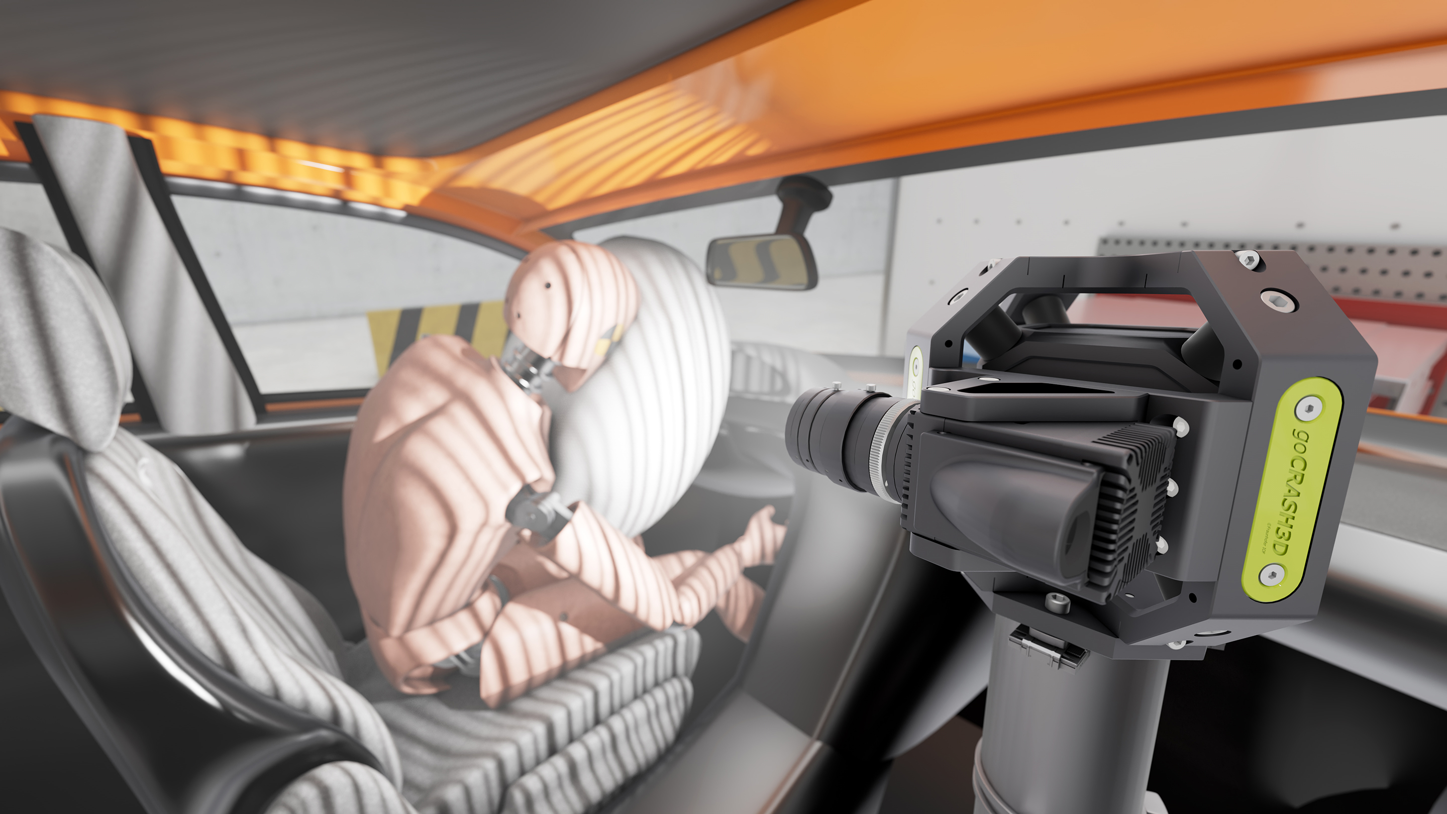 Mit goCRASH3D lassen sich Vorgänge zum Beispiel im Fußraum beobachten, die vorher nicht oder nur sehr eingeschränkt zugänglich waren. Auch Bereiche, die der sich entfaltende Airbag verdeckt, können so verfolgt werden.