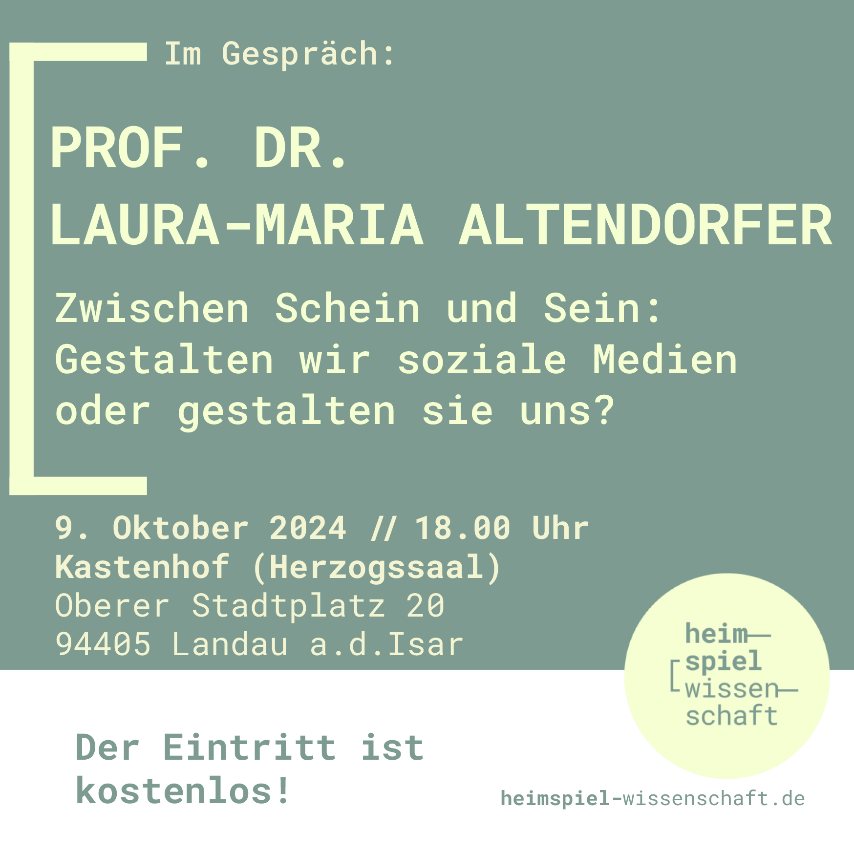 Am 9. Oktober 2024 lädt Prof. Dr. Laura-Maria Altendorfer von der IU Internationalen Hochschule zu einem spannenden Austausch über soziale Medien in ihrer Heimat Landau an der Isar ein.