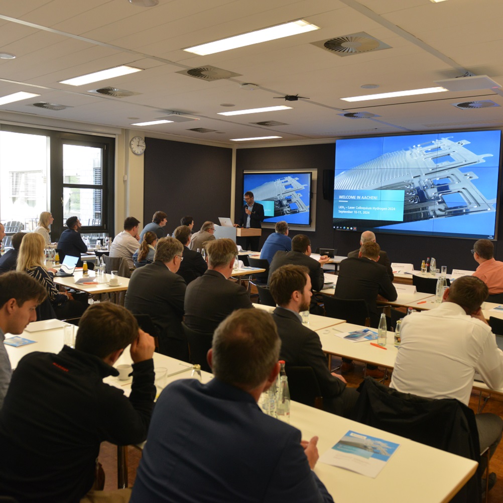 On September 10 and 11, 2024, the 5th Laser Colloquium Hydrogen 2024 - LKH2 brought together around 60 renowned experts from industry, science and research. The now well-established conference is the ideal platform for discussing the latest developments and applications of laser technology for fuel cell and hydrogen production. At the Fraunhofer Institute for Laser Technology ILT in Aachen, the two-day event focused on the continuous production of metallic bipolar plates, process monitoring and the functionalization of surfaces.