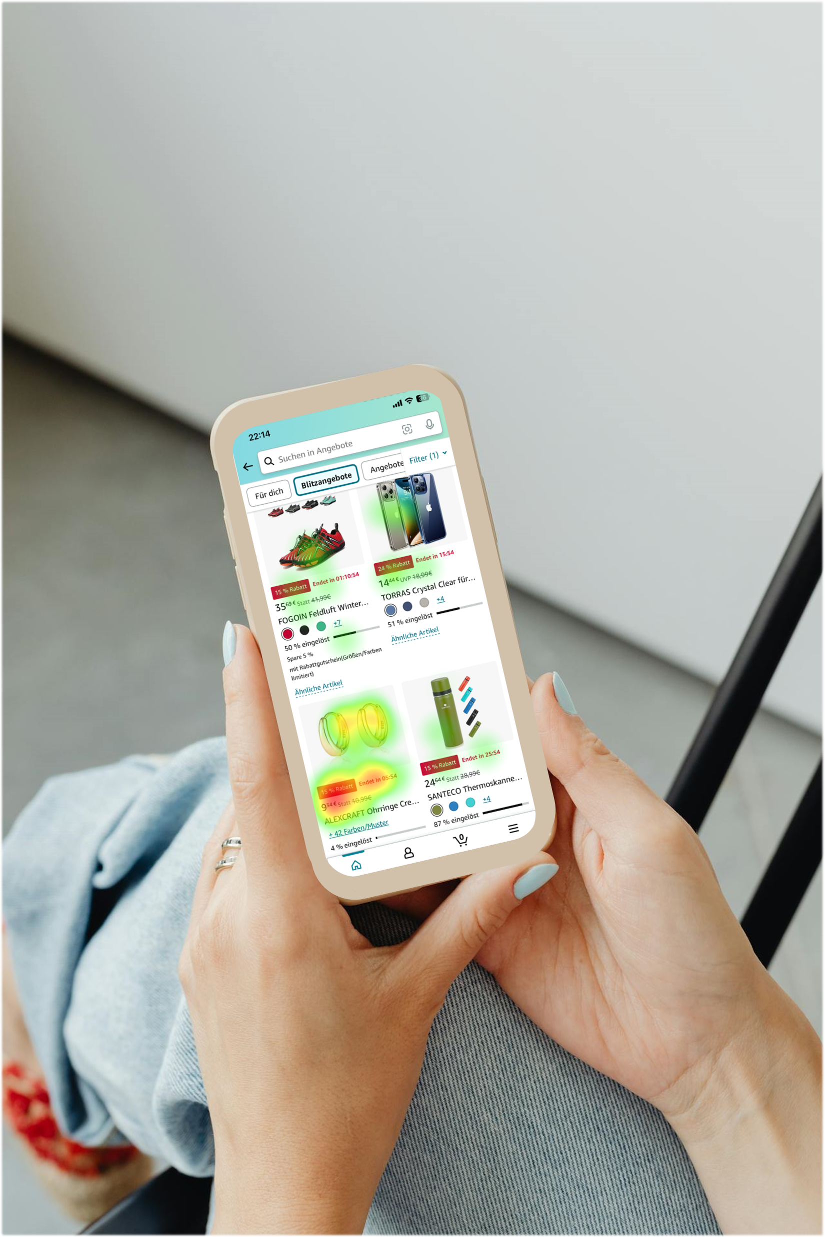 Ein weiteres Phänomen, das während solcher Events eine Rolle spielt, sind die sogenannten Trigger-Reize. Diese kommen aus der Verkaufspsychologie und lassen sich mit Eye Tracking nachweisen. „Rote Rabattkennzeichnungen oder durchgestrichene Ankerpreise wie die UVP (unverbindliche Preisempfehlung) suggerieren enorme Ersparnisse“, so Rasimus. Besonders bei den Blitzangeboten spielt die Zeit eine wichtige Rolle: Die begrenzte Verfügbarkeit und der Countdown erzeugen eine künstliche Dringlichkeit, die viele Menschen dazu verleitet, schnell zu handeln, bevor das Angebot verschwindet.