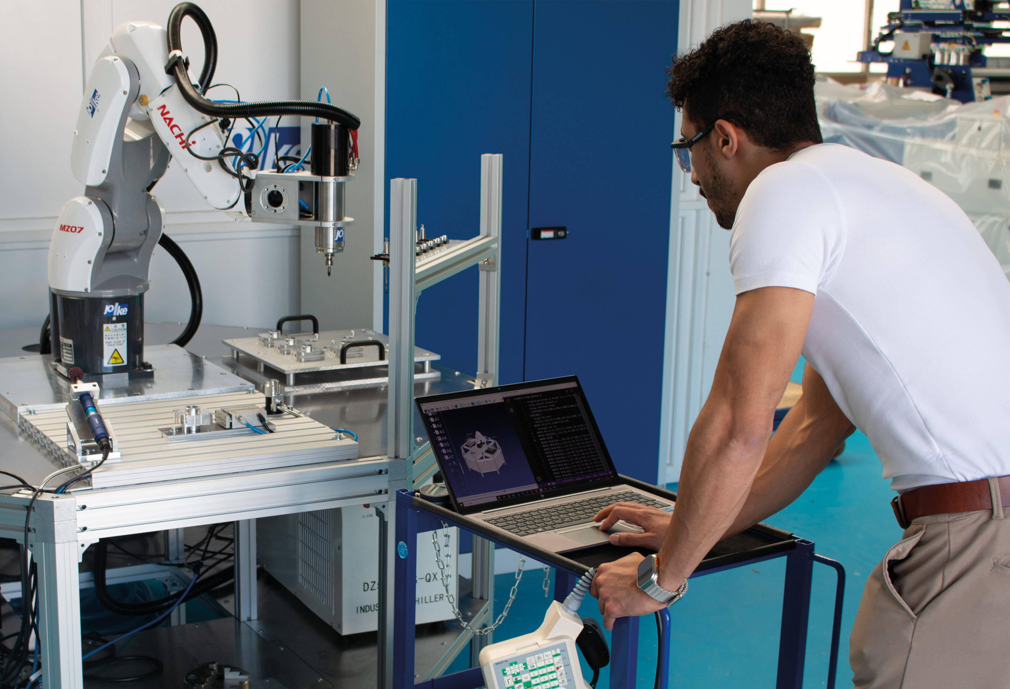 Sind alle Prozessschritte erfasst, werden sie über eine Software-Schnittstelle in einen Programmiercode übersetzt, der die Bewegungen des Roboters automatisch berechnet und ausführt. Die Daten werden in so genannten Templates, also Vorlagen für den jeweiligen Veredelungsprozess, zusammengefasst. „Auf der grafischen Oberfläche müssen die Templates dann nur noch in der richtigen Reihenfolge an die Anforderungen des jeweiligen Bauteils angepasst werden. Diese Vorgehensweise wird es den Nutzer*innen wesentlich erleichtern, das Steuerungsprogramm für den Roboter zu erstellen“, erklärt der Projektleiter.