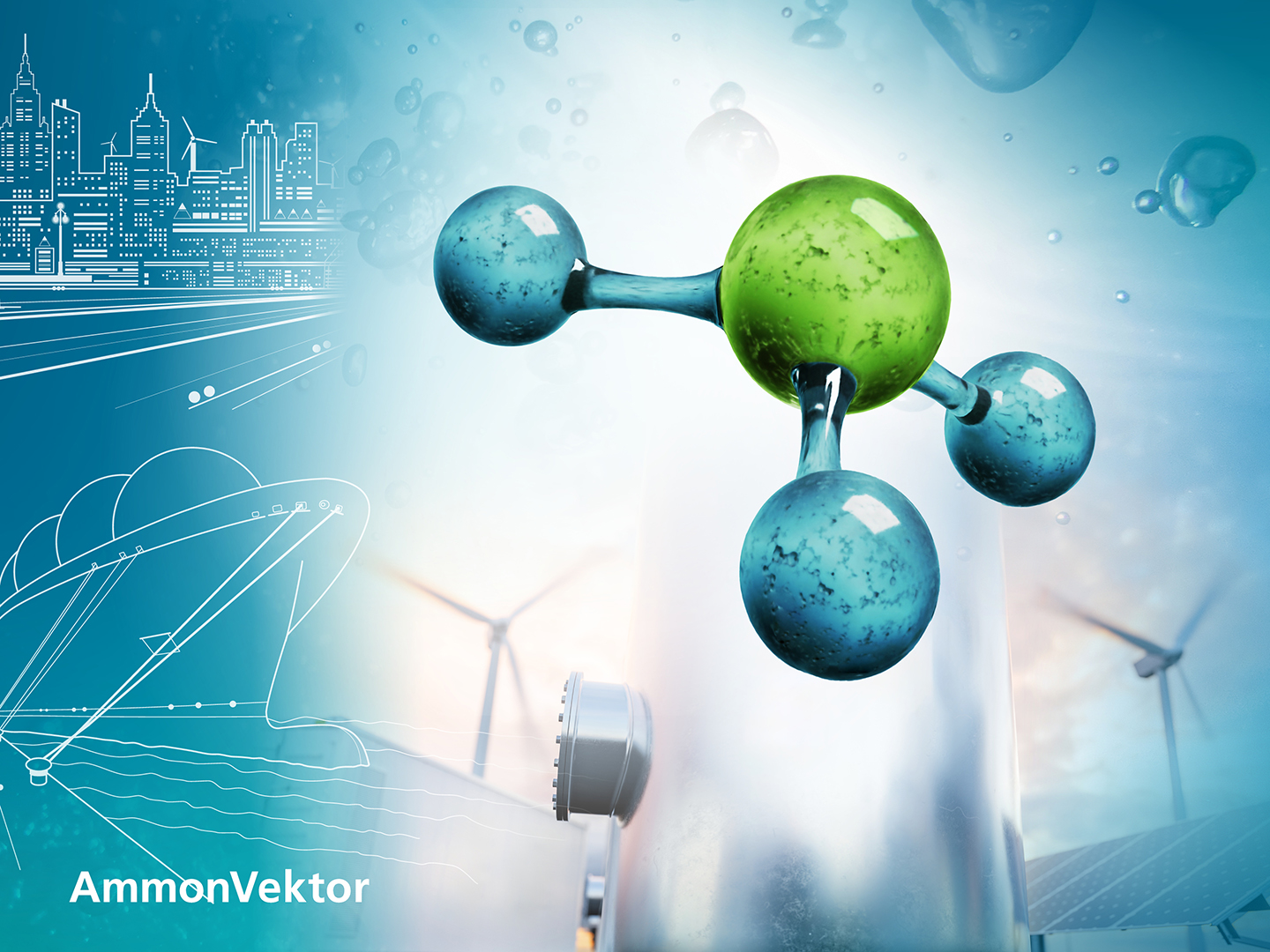 Der industrielle Bedarf an Strom und Prozesswärme in Deutschland ist immens und wird ohne Importe nachhaltig erzeugter Energieträger nicht gedeckt werden können. Ein solcher Energieträger der Zukunft ist Wasserstoff. Auf dem Weg zu einer Wasserstoffwirtschaft gibt es jedoch noch viele offene Fragen. Eine davon ist, wie die Versorgung mit grünem Wasserstoff in der Fläche aussehen kann. Lösungen für die logistischen Herausforderungen werden im Rahmen von AmmonVektor entwickelt. Das Fraunhofer-Leitprojekt setzt auf Ammoniak als sogenannten Energievektor, der sich in seiner flüssigen Form technisch einfach und ohne großen Energieaufwand transportieren lässt. Ein weiterer Vorteil ist, dass Ammoniak durch die Düngemittelproduktion bereits über eine weltweite Transportinfrastruktur verfügt.