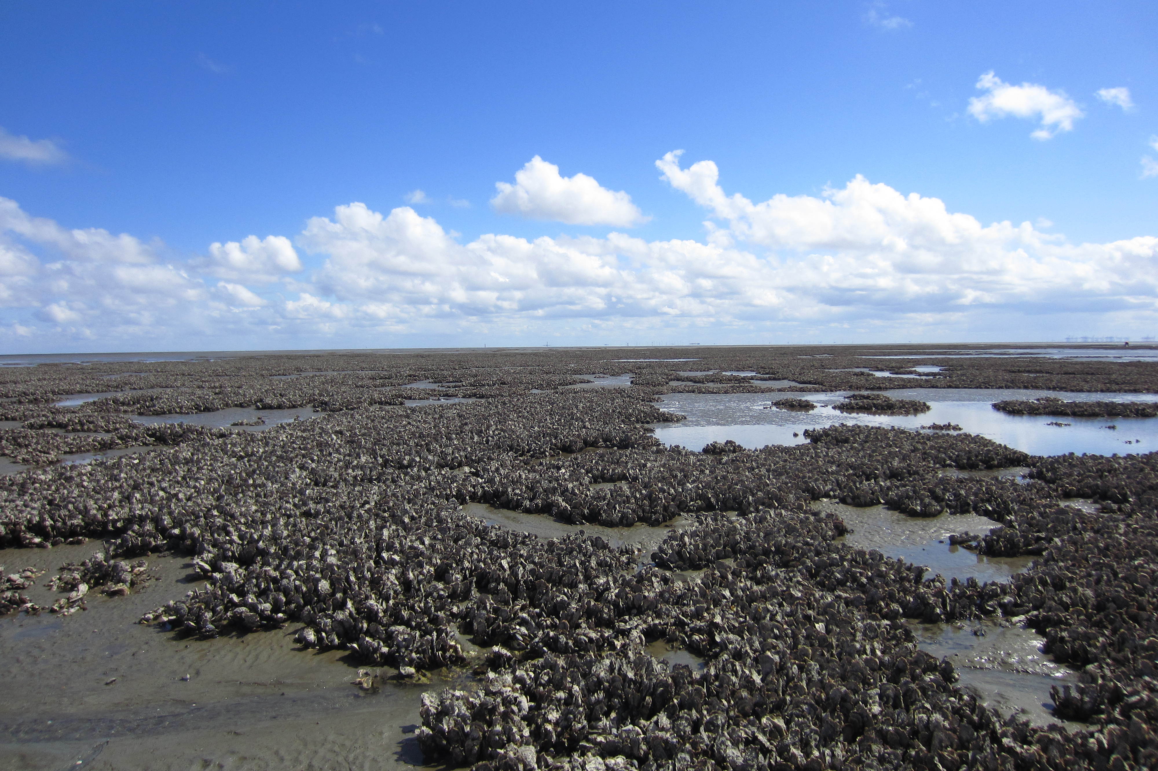 Forscher von Senckenberg am Meer haben gemeinsam mit Wissenschaftler*innen der Universitäten Braunschweig und Hannover die Wachstumsraten von Riffen der Pazifischen Auster und deren Eignung als natürliche Wellenbrecher untersucht. Die nicht-heimische Muschelart hat die bisherigen Miesmuschelbänke in der Nordsee fast vollständig durch Riffe ersetzt, die zum Küstenschutz beitragen könnten. Die Studie zeigt, dass die Austernriffe mit einem mittleren Wachstum von bis zu 19,8 Millimetern pro Jahr dem Meeresspiegelanstieg entgegenstehen könnten. Das Wachstum der Riffe hängt dabei stark von Witterungsbedingungen und dem zahlenmäßigen Auftreten der Austern ab.