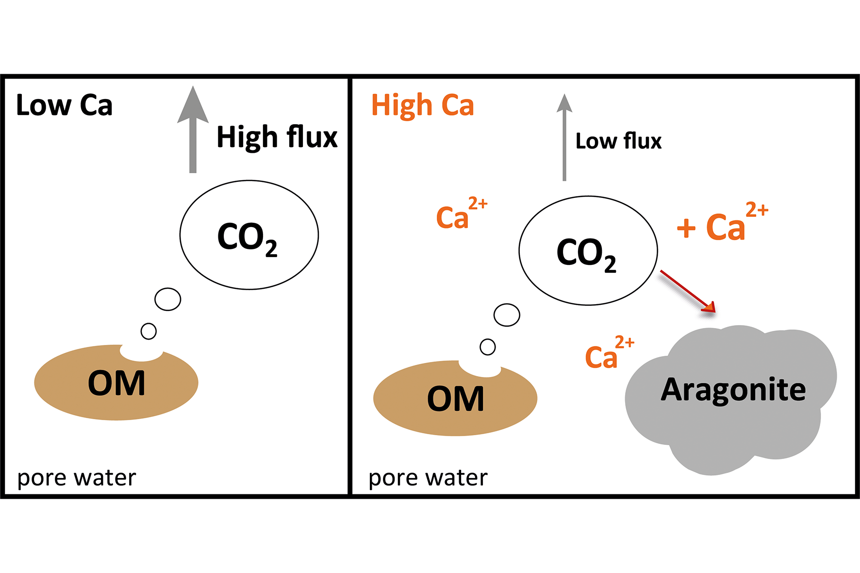 Calcium reduces CO2 release - through the formation of aragonite