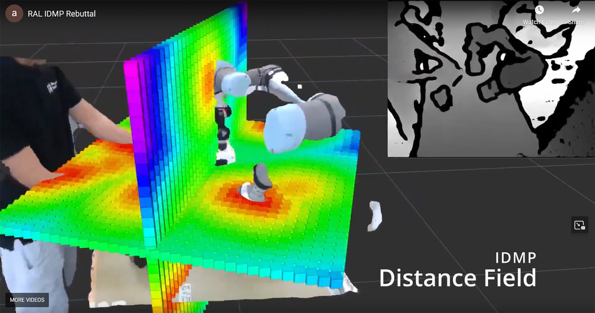 Das Konzept, den Roboter beispielsweise als „dritte Hand“ des Menschen einzusetzen, vervielfache die Anwendungsfälle, bedeute durch die nötige räumliche Nähe aber ein deutlich größeres Risiko für Unfälle, so Prof. Dr. Kaupp. Er erläuterte den Zielkonflikt zwischen Produktivität und Sicherheit, der meist noch so gelöst werde, dass Roboter sich nur langsam bewegen, was aber die Produktivität verringere. Es brauche auch in einem hochdynamischen Umfeld eine berührungslose Sicherheitstechnik – das heißt, Mensch und Roboter kommen sich nicht in die Quere, obwohl sie sich für ihre Aufgaben schnell bewegen müssen. Um dies leisten zu können, entwickelte ein Team aus CERI-Forschenden und Wissenschaftlern der University of Technology, Sydney (Australien), gemeinsam eine granulare Arbeitsraumüberwachung in Echtzeit: „Der Roboter weiß für jeden Punkt im Arbeitsraum, wie weit das nächste Objekt entfernt ist und in welcher Richtung es sich befindet“, erklärte Prof. Dr. Kaupp. Mit dieser Information ist der Roboter in der Lage eine reaktive Bewegungsplanung einzusetzen und kann dadurch auf unvorhergesehene Ereignisse rechtzeitig reagieren.